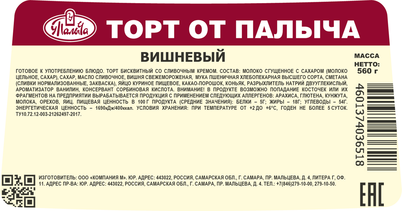 Торт У Палыча Вишневый, 560г