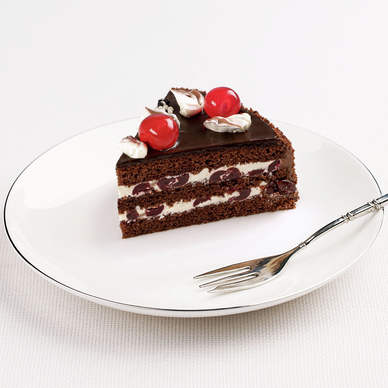 Это классический десерт с густым шоколадно-сливочным ароматом. В основе пышные шоколадные коржи из отборной муки высшего сорта на свежей сметане из нормализованных сливок и закваски. Бисквиты прослоены нежным кремом на основе натурального сливочного масла. В начинке сочная вишня на коньяке. По краям торт декорирован крошкой из бисквита, сверху шоколадной глазурью, и украшен сахарной вишней и лепестками из нежного сливочного крема.
