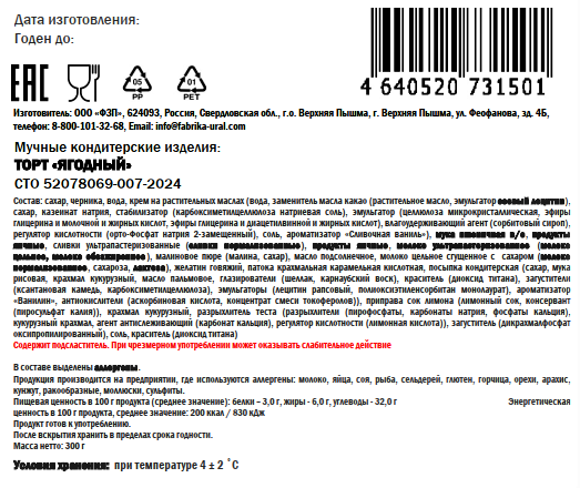 Сахар, черника, вода, крем на растительных маслах вода, заменитель масла какао растительное масло, эмульгатор соевый лецитин, сахар, казеинат натрия, стабилизатор карбоксиметилцеллюлоза натриевая соль, эмульгатор целлюлоза микрокристаллическая, эфиры глицерина и молочной и жирных кислот, эфиры глицерина и диацетилвинной и жирных кислот, влагоудерживающий агент сорбитовый сироп, регулятор кислотности орто-Фосфат натрия 2-замещенный, соль, ароматизатор Сливочная ваниль, мука пшеничная, продукты яичные, сливки ультрапастеризованные сливки нормализованные, продукты яичные, молоко ультрапастеризованное молоко цельное, молоко обезжиренное, малиновое пюре малина, сахар, масло подсолнечное, молоко цельное сгущенное с сахаром молоко нормализованное, сахароза, лактоза, желатин говяжий, патока крахмальная карамельная кислотная, посыпка кондитерская сахар, мука рисовая, крахмал кукурузный, масло пальмовое, глазирователи шеллак, карнаубский воск, краситель диоксид титана, загустители ксантановая камедь, карбоксиметилцеллюлоза, эмульгаторы лецитин рапсовый, полиоксиэтиленсорбитан монолаурат, ароматизатор Ванилин, антиокислители аскорбиновая кислота, концентрат смеси токоферолов, приправа сок лимона лимонный сок, консервант пиросульфат калия, крахмал кукурузный, разрыхлитель теста разрыхлители пирофосфаты, карбонаты натрия, фосфаты кальция, кукурузный крахмал, агент антислеживающий карбонат кальция, регулятор кислотности лимонная кислота, загуститель дикрахмалфосфат оксипропилированный, соль, краситель диоксид титана.