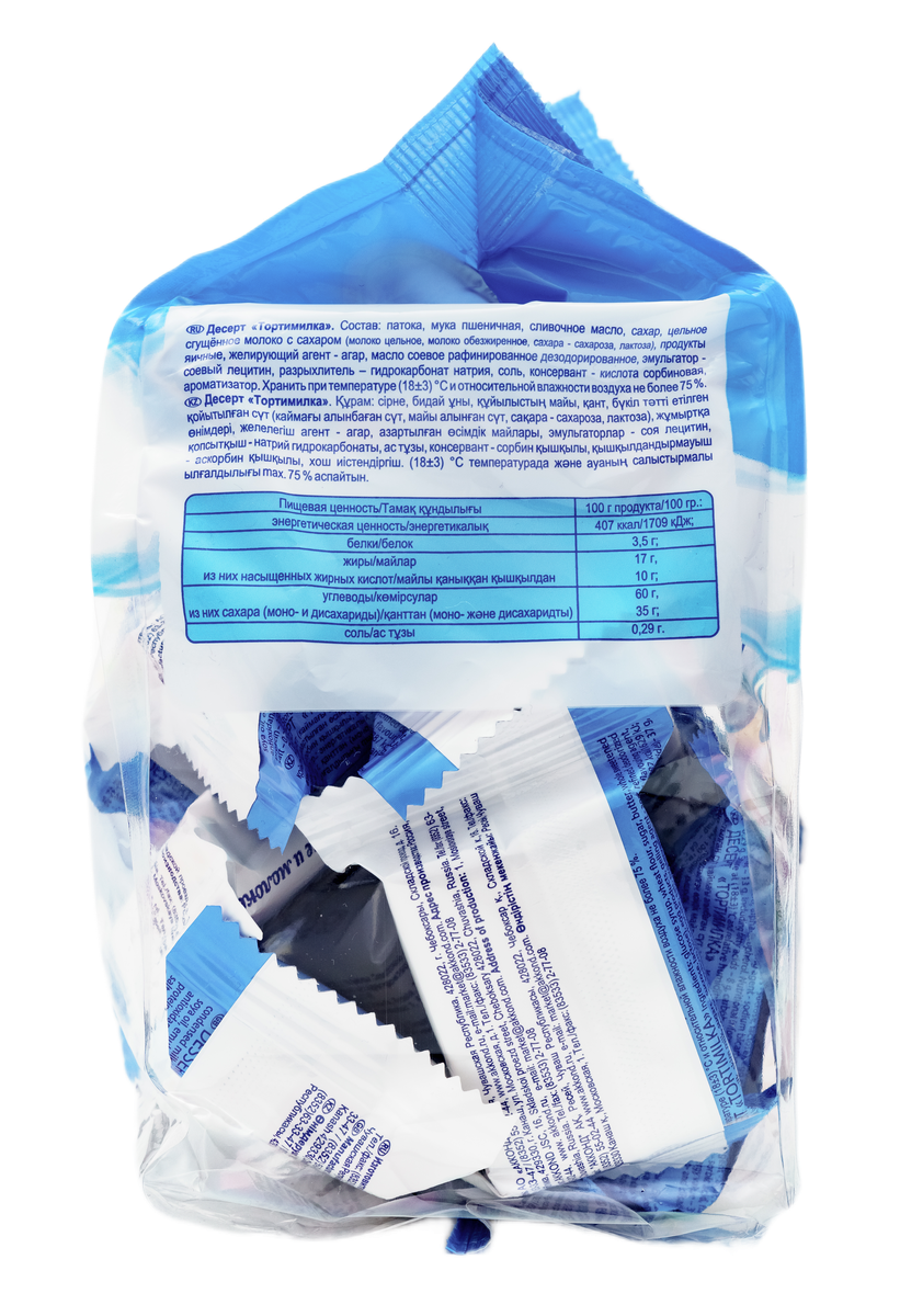 Патока, мука пшеничная, сахар, сливочное масло, цельное сгущённое молоко с сахаром (молоко цельное, молоко обезжиренное, сахара - сахароза, лактоза), продукты яичные, желирующий агент - агар, масло растительное рафинированное дезодорированное, эмульгатор - соевый лецитин, разрыхлитель – гидрокарбонат натрия, соль, консервант - кислота сорбиновая, ароматизатор, антиокислители – аскорбиновая кислота, альфа-Токоферол.