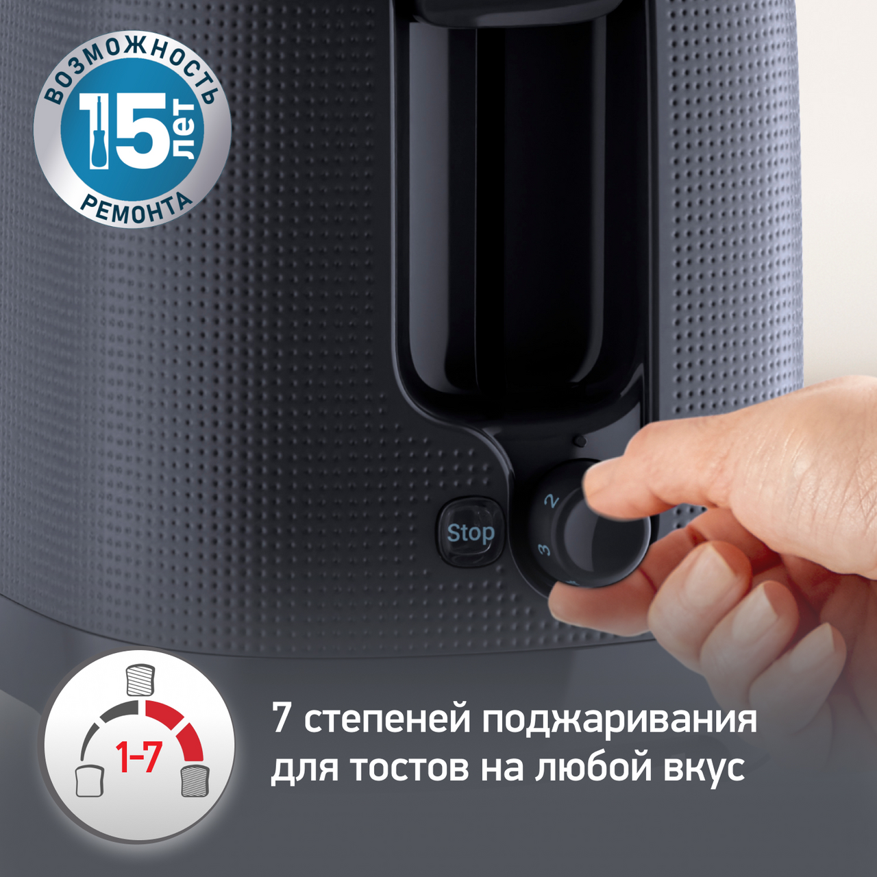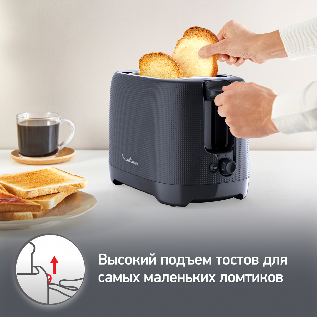 Сделайте каждое утро особенным вместе с тостером Morning от Moulinex с двумя отделениями. Его минималистичный, но при этом запоминающийся дизайн идеально дополнит интерьер любой кухни. Выбирайте любой из 7 уровней подрумянивания на свой вкус, а функция Стоп гарантирует, что вы получите именно ту корочку, которую любите больше всего. Высокое поднятие позволяет удобно поджаривать и доставать даже небольшие тосты, а широкие отделения легко вместят большие ломтики хлеба. Наслаждайтесь приятным хрустом и не думайте про уборку - тостер оснащен удобным съемным лотком для крошек.