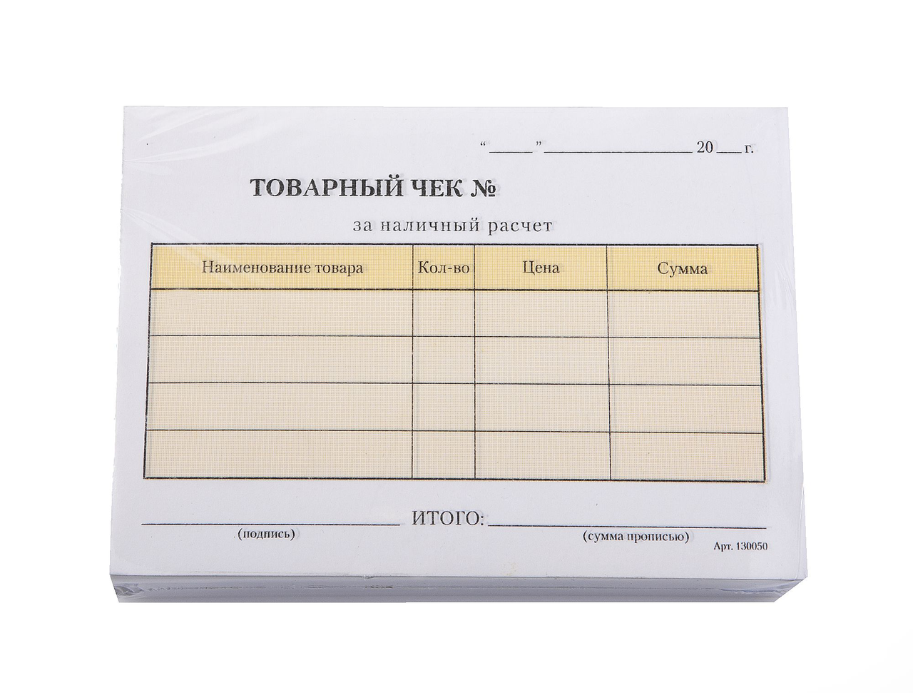 Товарный чек самокопирующийся, 50 листов. Формат А5. Двухслойный. Представляет собой книжку из 50 комплектов самокопирующихся бланков по 2 листа. Чтобы избежать копирования на последующие слои, необходимо положить отворот обложки под заполняемый бланк. Комплект бланков самокопирующей накладной соединен специальным клеем, который скрепляет листы и позволяет при необходимости легко разделить документы. В упаковке 5 книжек по 50 листов.
