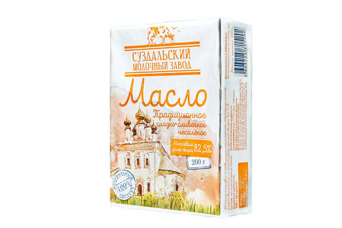Масло Традиционное 82,5% Суздальский МЗ, 200г БЗМЖ производится суздальским комбинатом молочных продуктов, товары которого представлены во многих городах России и странах ближнего зарубежья. Сливочное масло является продуктом многоступенчатой переработки натурального коровьего молока. Положительные качества продукта в основном обусловлены большим содержанием витаминов и минералов. Одн��ко в основном продукт состоит из жиров, не все из которых одинаково полезны для организма человека. Масло считается мощным антиоксидантом, поскольку в нем содержится большое количество каротина, необходимого для полноценной жизнедеятельности организма человека. Защитные функции иммунной системы против вирусов и бактерий стимулирует витамин А. Также ученые выяснили, что при регулярном употреблении масла, значительно снижается риск возникновения кишечных заболеваний, а также улучшается состояние щитовидной железы. Сливочное масло используется в разных областях деятельности человека, начиная от кулинарии, заканчивая рецептами народной и восточной медицины, косметологией. Сливочное масло не употребляется как самостоятельный продукт. В чистом виде его намазывают на ломтик хлеба или тоста, в качестве дополнительного ингредиента оно применяется для приготовления огромного количества блюд: выпечки, супов, гарниров, запеканок и т.д. Все полезные продукты следует принимать в меру и никогда не превышать требуемые количества.