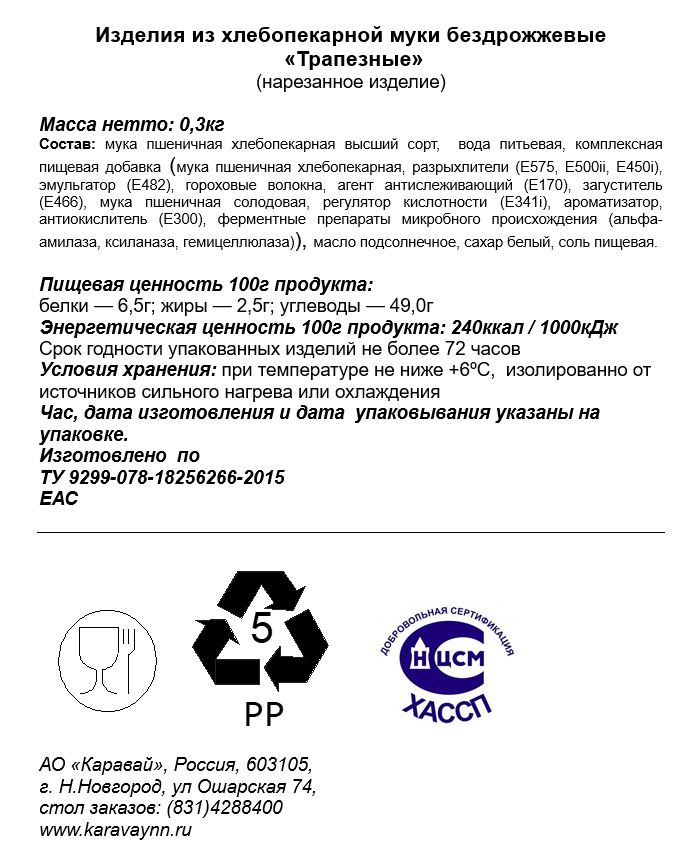 Хлеб Каравай Трапезный бездрожжевой, 300г