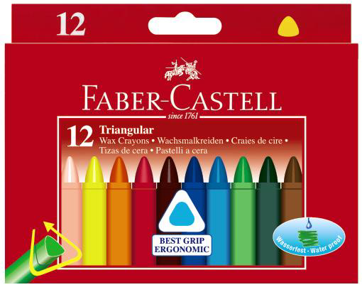 Трехгранные восковые карандаши Faber-Castell TRIANGULAR, набор цветов, в картонной коробке, 12 шт.