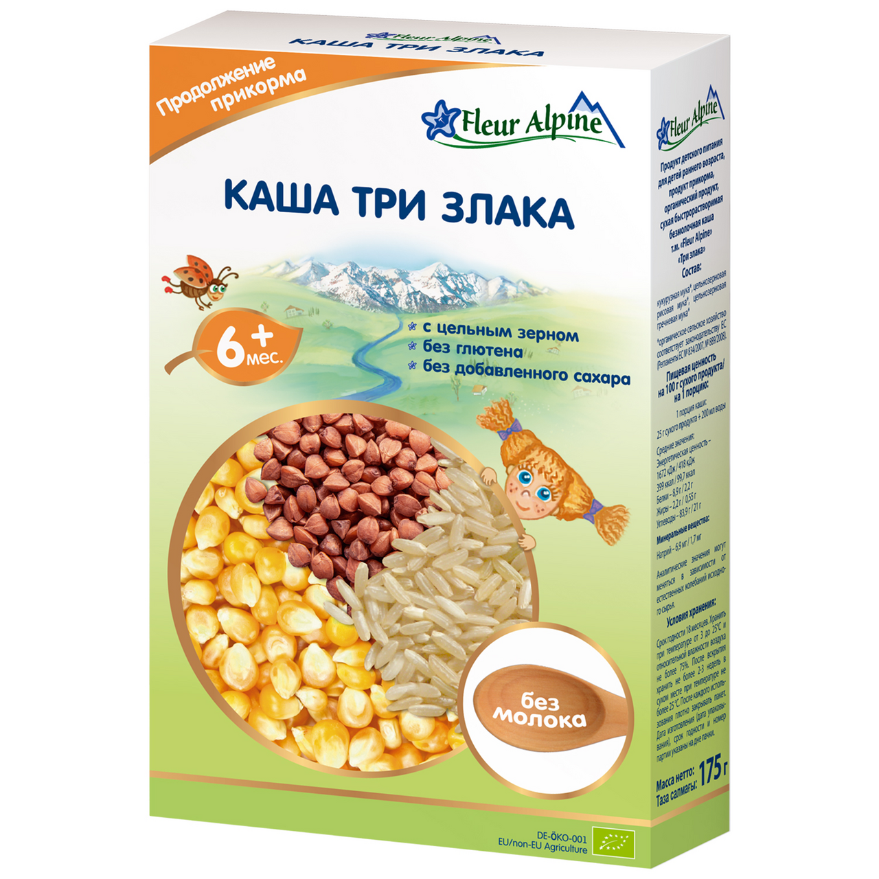 Каша безмолочная детская Fleur Alpine 3 злака с 6 месяцев, 175г