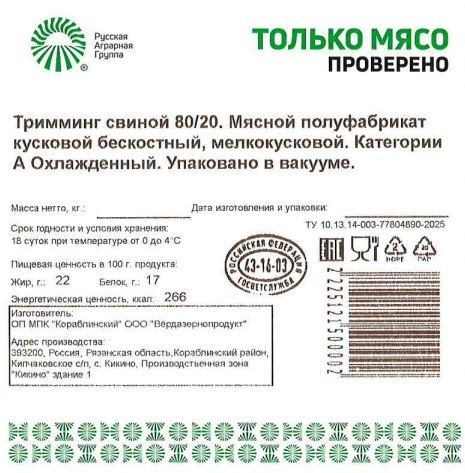 Тримминг свиной Только мясо охлажденный, ~7.5кг