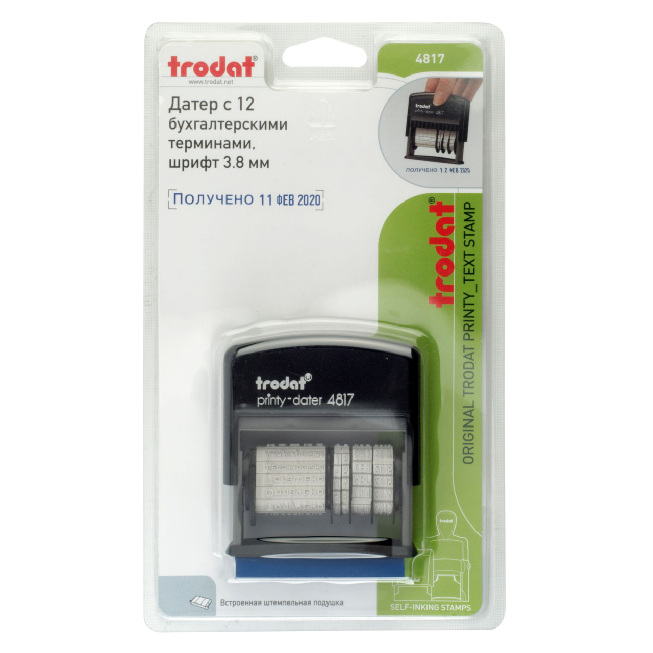 Датер Trodat 4817 с 12 бухгалтерскими терминами, пластик, 1 стр., 3.8 мм, банк, русский