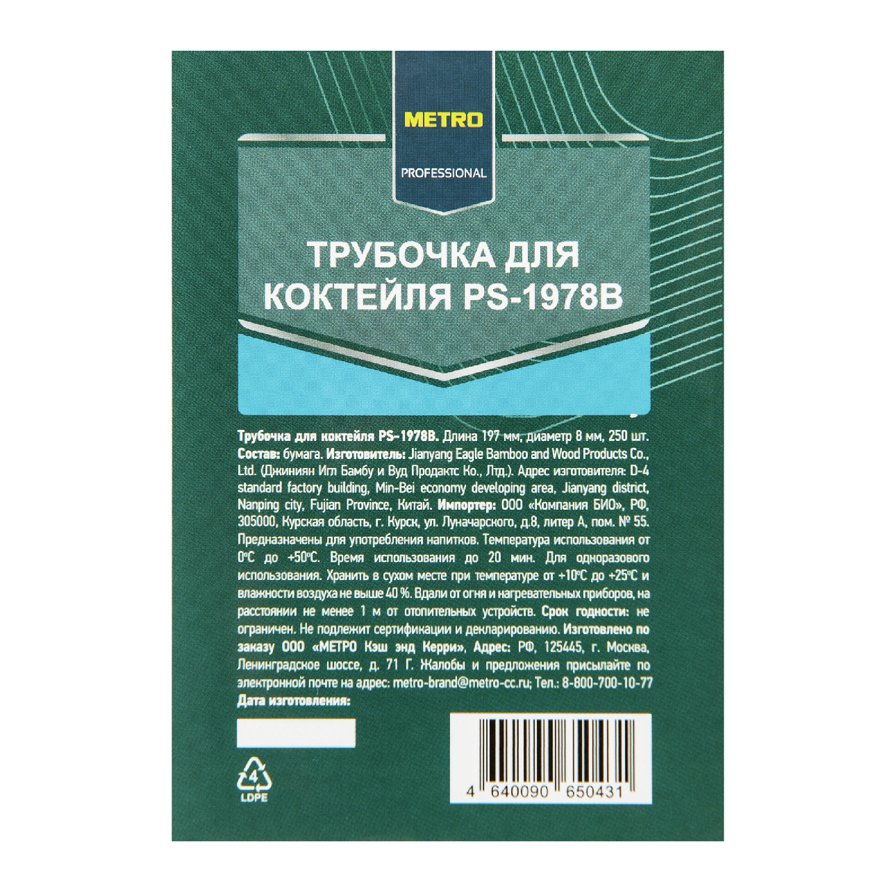 Трубочка для коктейлей METRO PROFESSIONAL - это экологичное изделие из бумаги, предназначенное для коктейлей. Диаметр 8 мм позволяет использовать трубочки для густых коктейлей. Удобная паковка 250 штук позволяет использовать трубочки для большого количества самых разных коктейлей.