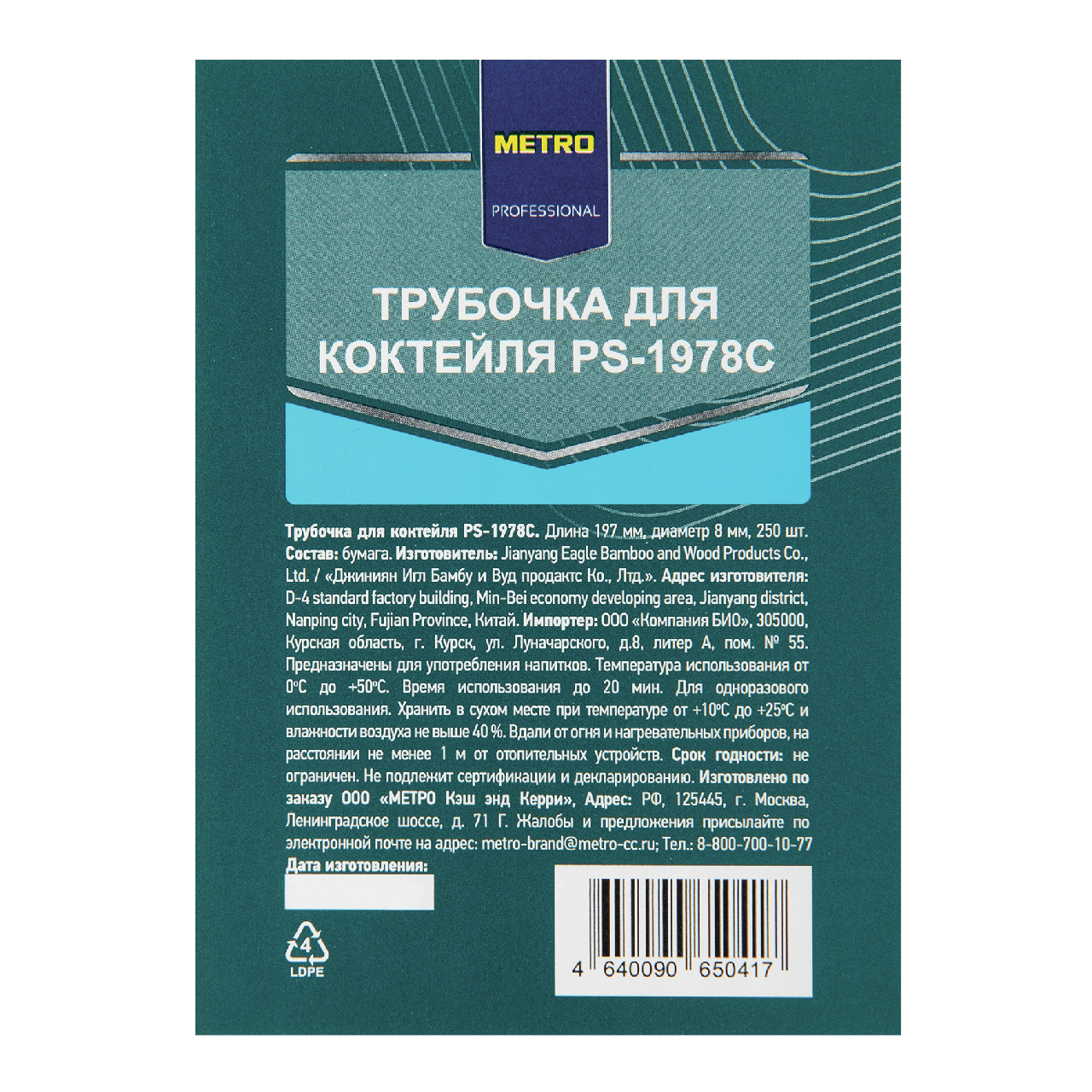 METRO PROFESSIONAL Трубочка для коктейля одноразовая бумажная бежевая 19.7 х 8см, 250шт