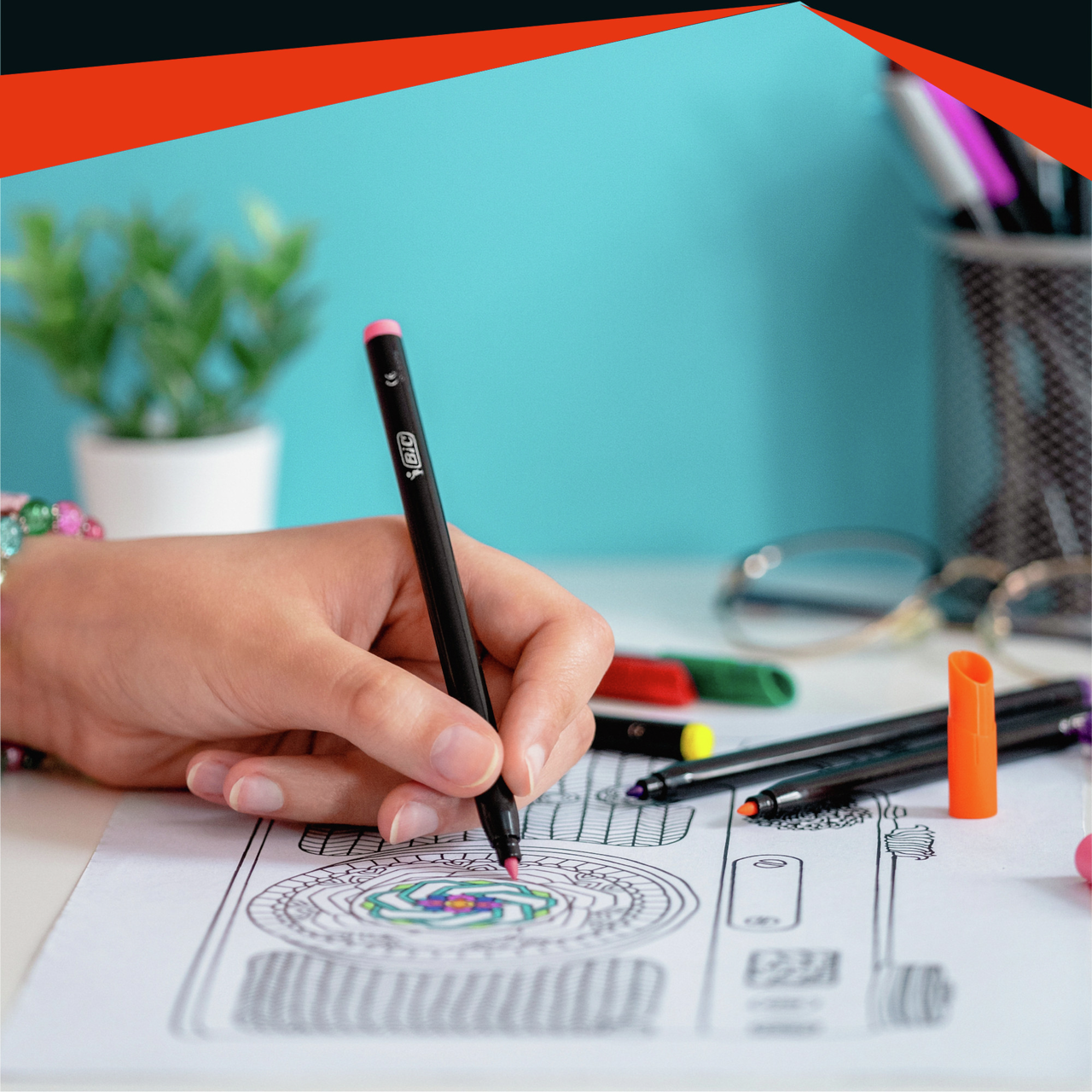 Фломастеры BIC Intensity идеально подходят для старшеклассников и студентов, работающих над творческими проектами. Чернила на водной основе оставляют на бумаге невероятно яркие цвета. Великолепная гамма 12 насыщенных цветов рассыпается на бумаге праздничным фейерверком. Пишущий узел диаметром 2,8 (2) мм и средние по толщине линии шириной до 0,9 мм позволят совершенствовать ваши техники рисования. Умная формула чернил предотвращает их высыхание при снятом колпачке в течение месяца (за исключением фломастера чёрного цвета). С самого начала своей деятельности BIC изготавливает и продает по всему миру качественные письменные принадлежности на любой бюджет. Эта миссия сделала когда-то маленькую французскую компанию одним из мировых лидеров в сфере производства канц��лярских товаров.