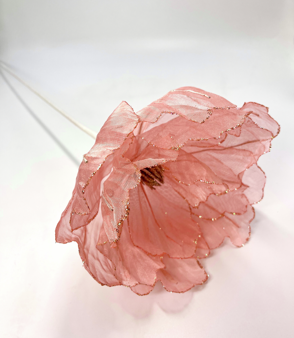 Цветок Christmasdeluxe розовый с золотом, 26см