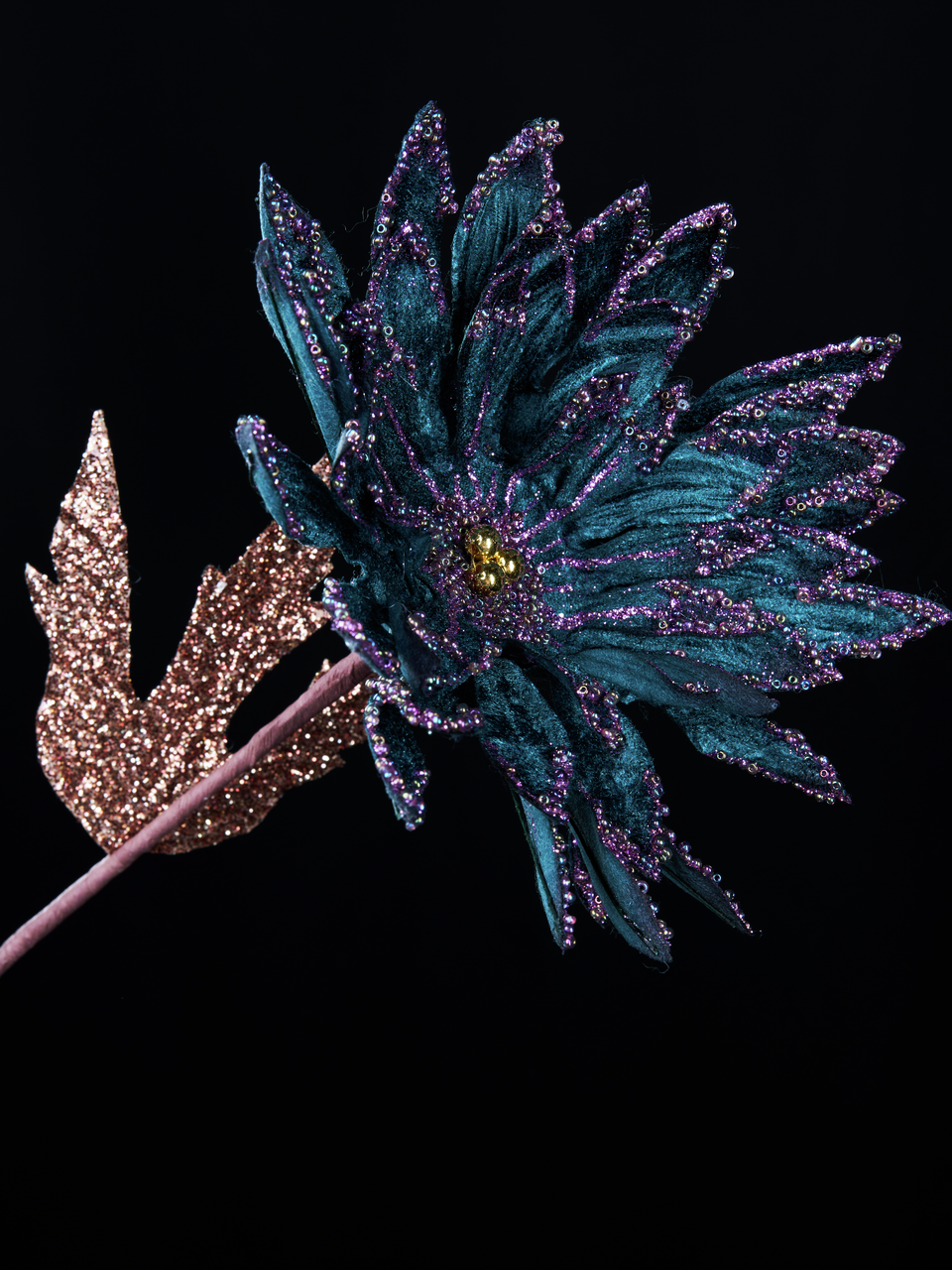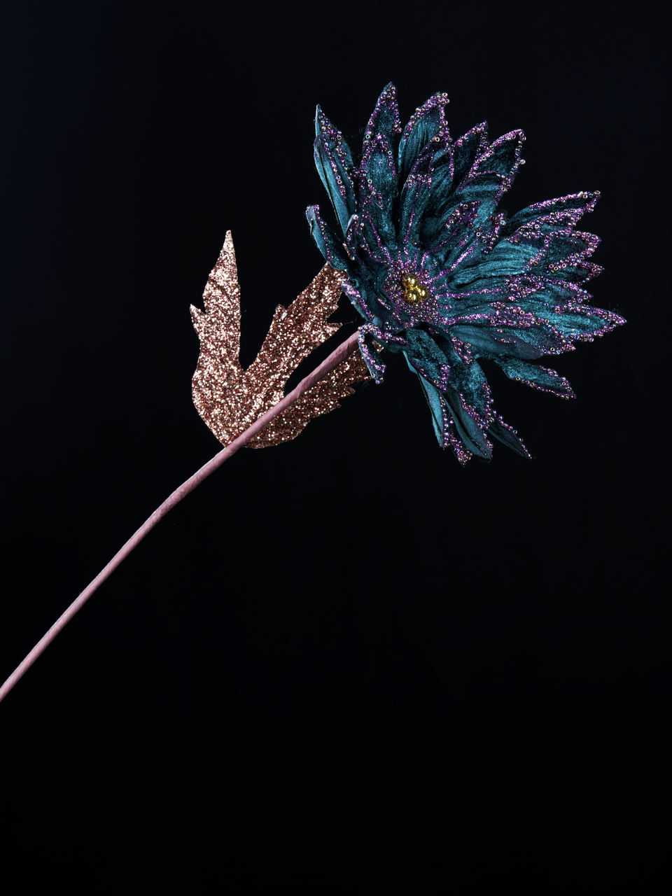 Цветок герберы Christmasdeluxe на ножке синий, 19 x 38см