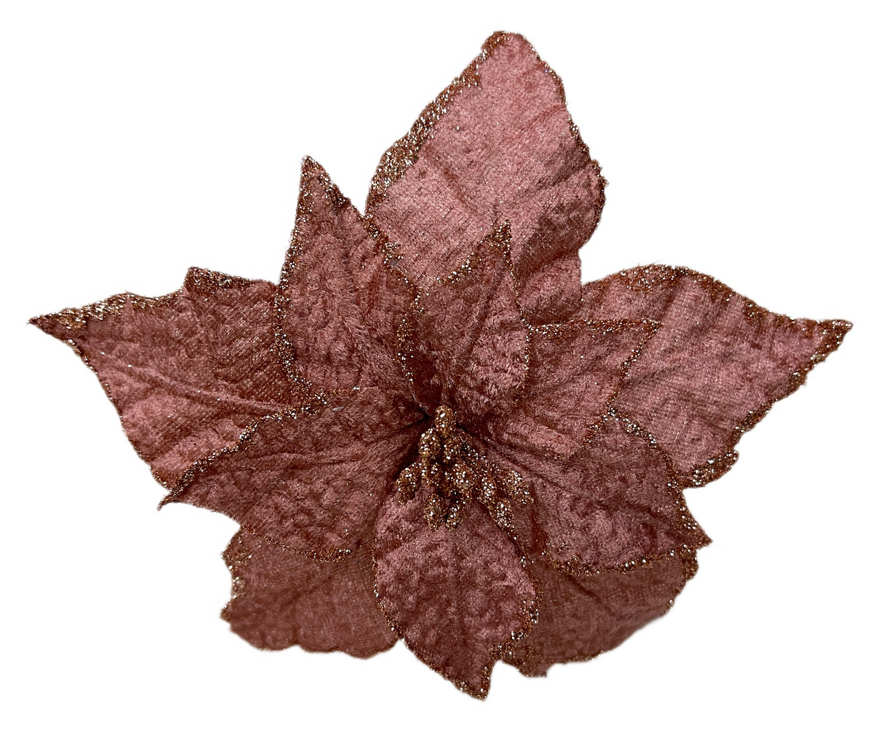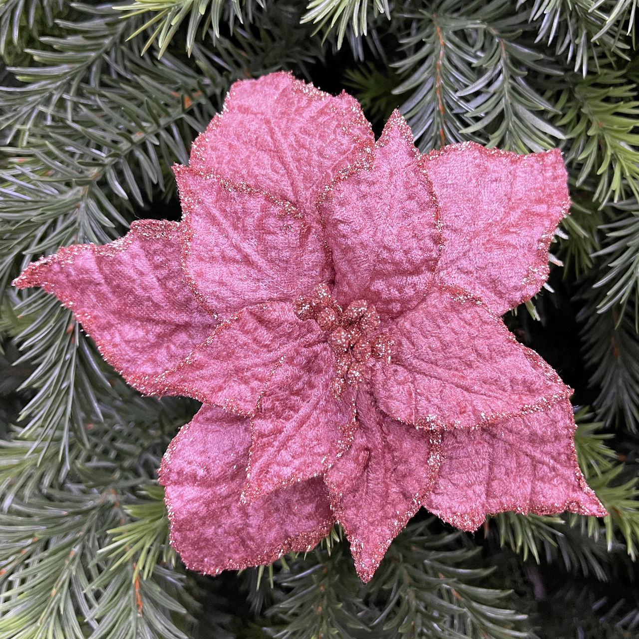 Цветок пуансеттия Christmasdeluxe на клипсе розовый из полиэстера, 20см
