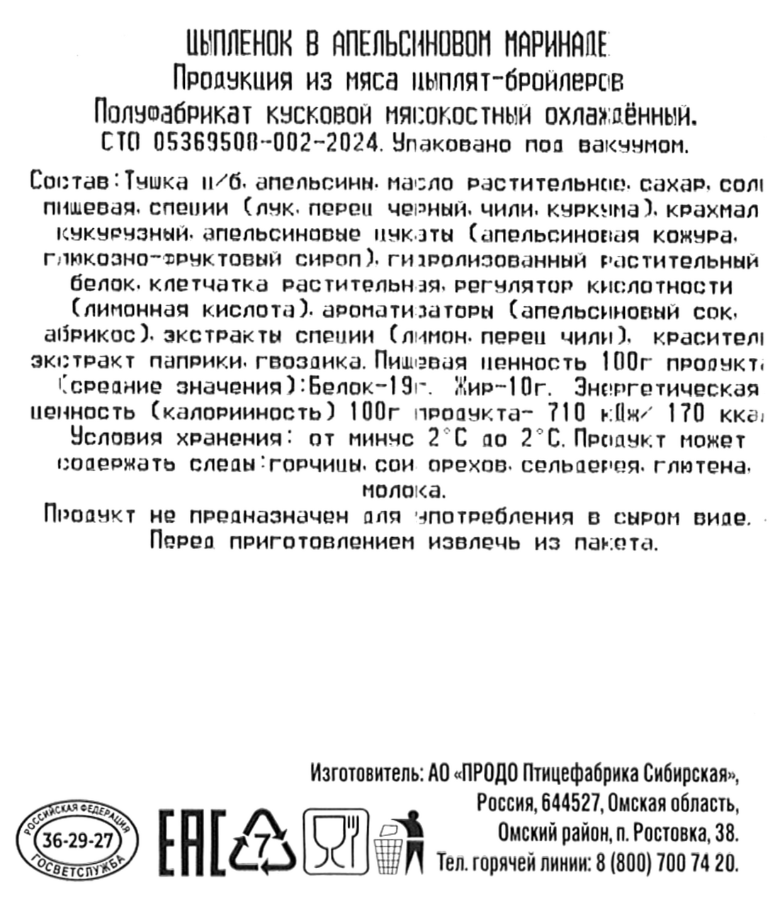 Вернуться назад Цыпленок-бройлер Рококо в апельсиновом маринаде охлажденный, ~1.8кг Оставить отзыв Артикул: 669670 Поделиться В избранное Раскупили Сообщить о поступлении Посмотреть похожие Узнать наличие в магазинах Бренд РОКОКО Страна-производитель Россия Подробнее Описание Тушка цыпленка-бройлера в апельсиновом маринаде - идеальное решение для домашнего ужина. Курочка в апельсиновом соусе, отборное куриное мясо, уникальная рецептура кормов. Полное описание Характеристики Бренд РОКОКО Страна-производитель Россия Раскупили Сообщить о поступлении Посмотреть похожие Узнать наличие в магазинах