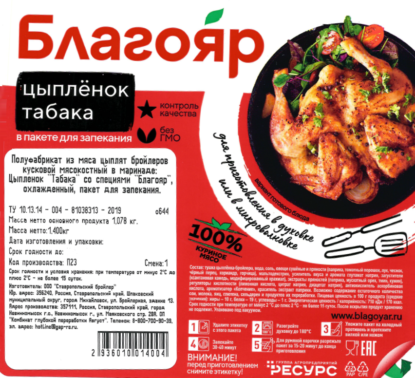Цыпленок табака Благояр со специями охлажденный, 1.4кг