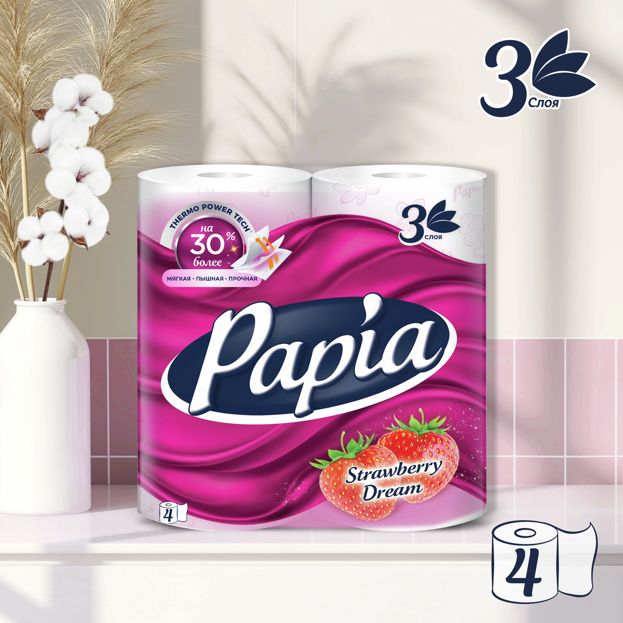 Туалетная бумага Papia Клубничная мечта 3-слойная, 4 рулона