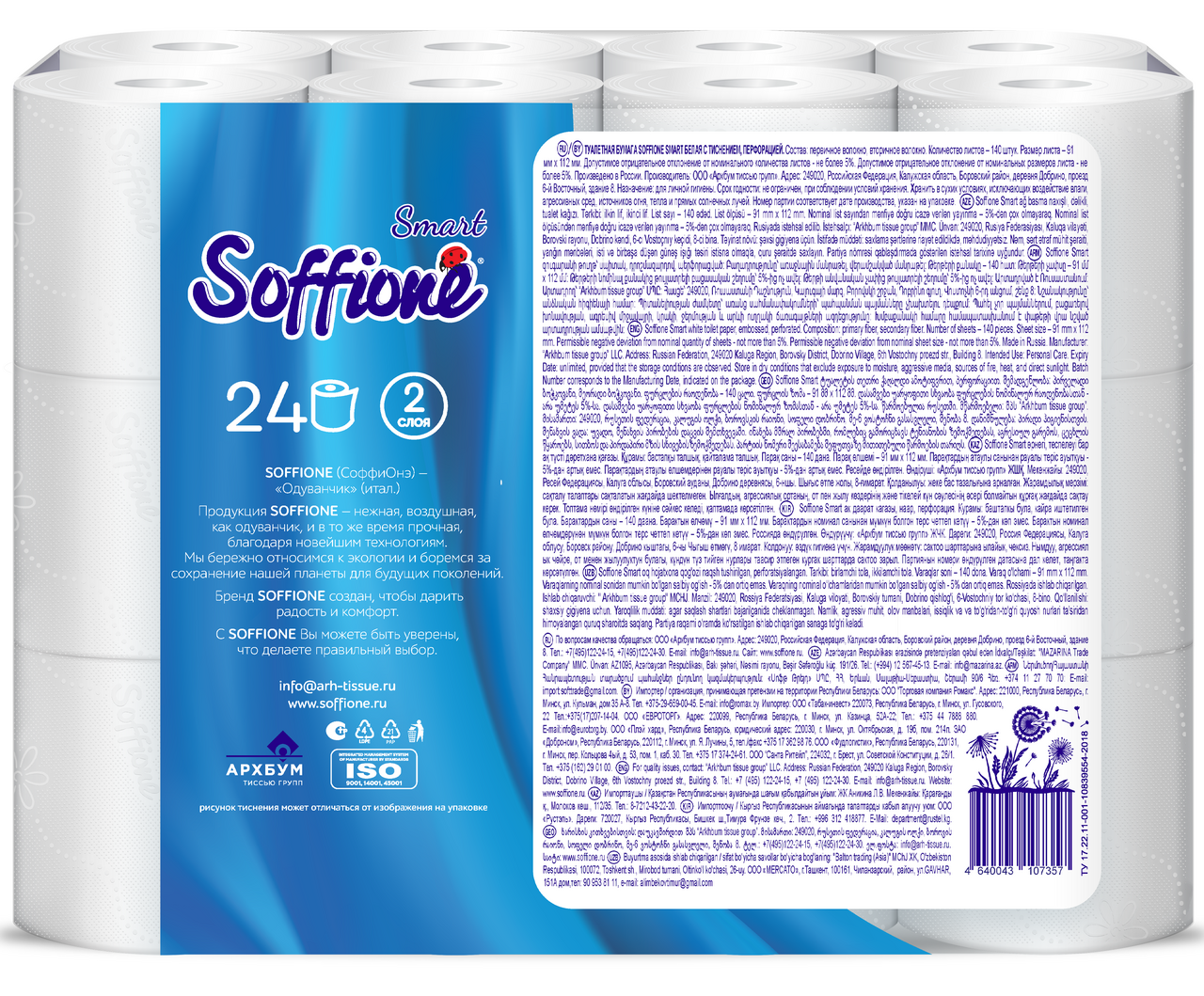 Туалетная бумага Soffione Smart двуслойная 24 рулона