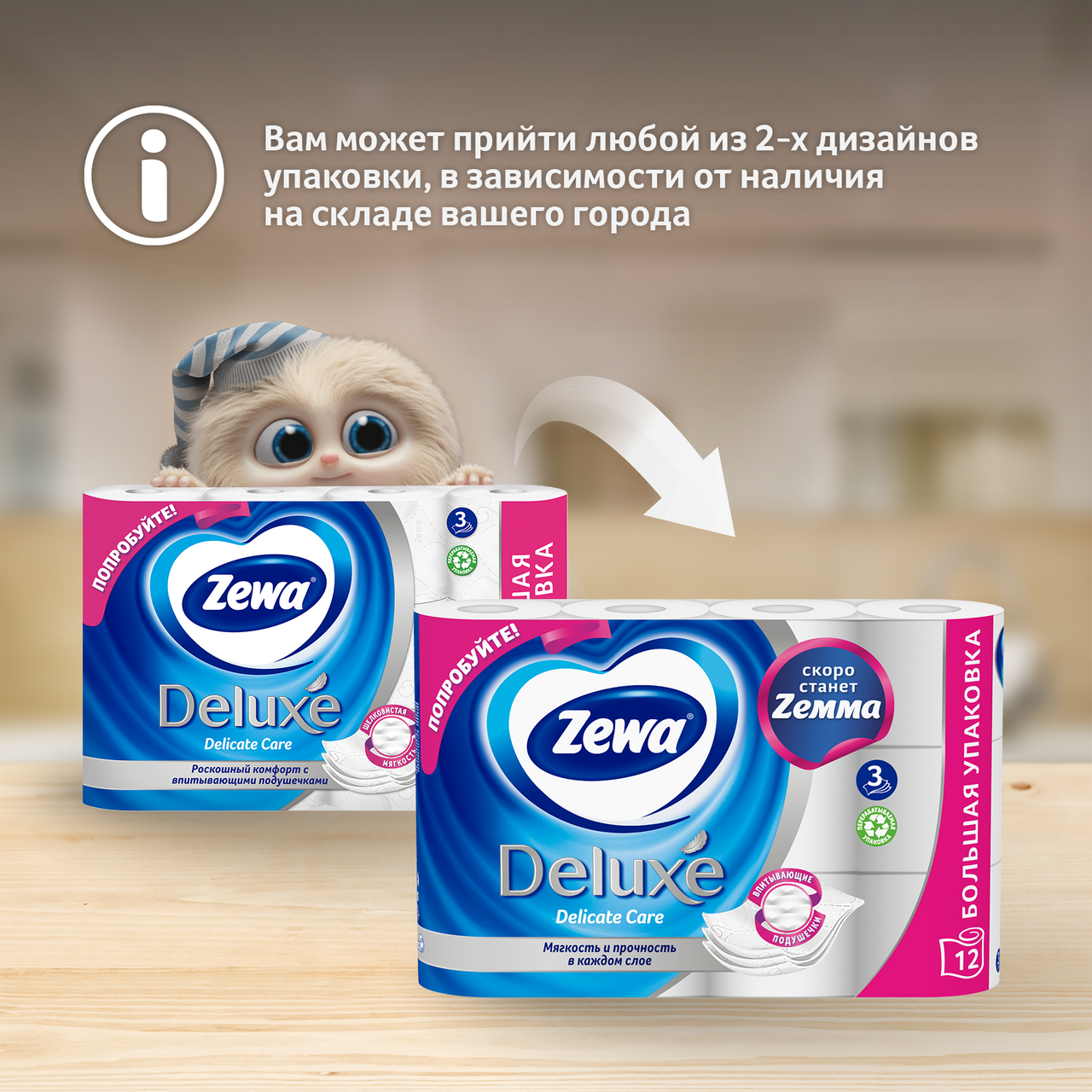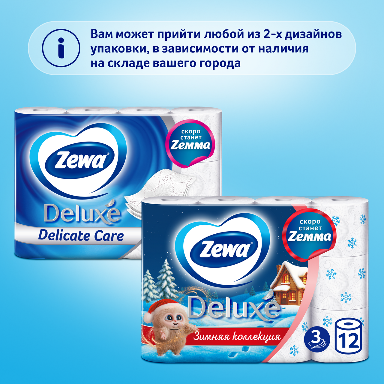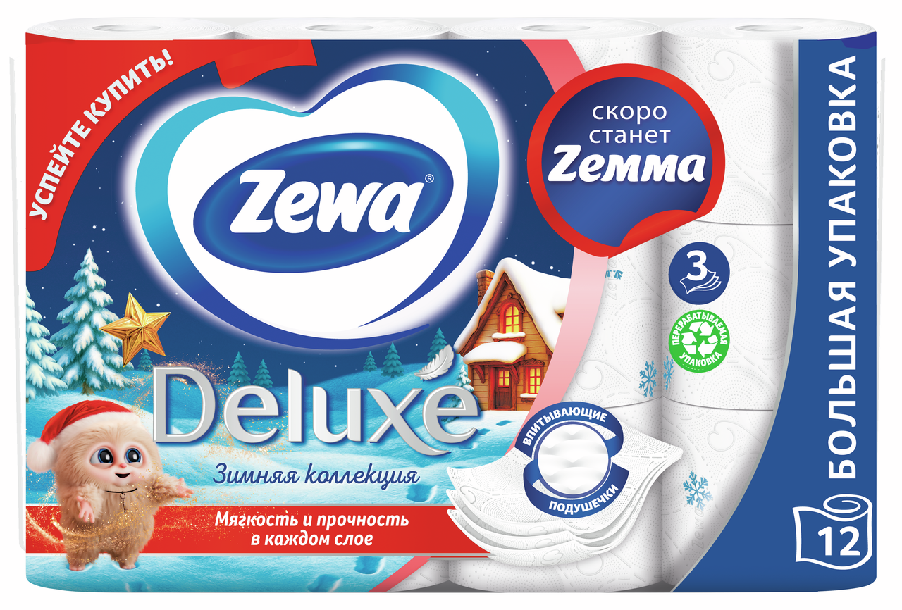 Туалетная бумага Zewa Deluxe 3-слойная, 12 рулонов