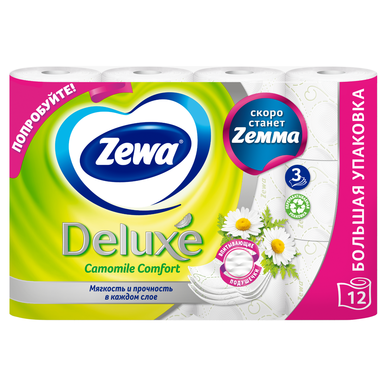 Туалетная бумага Zewa Deluxe Ромашка 3-слойная, 12 рулонов