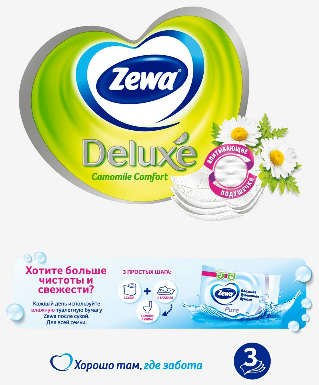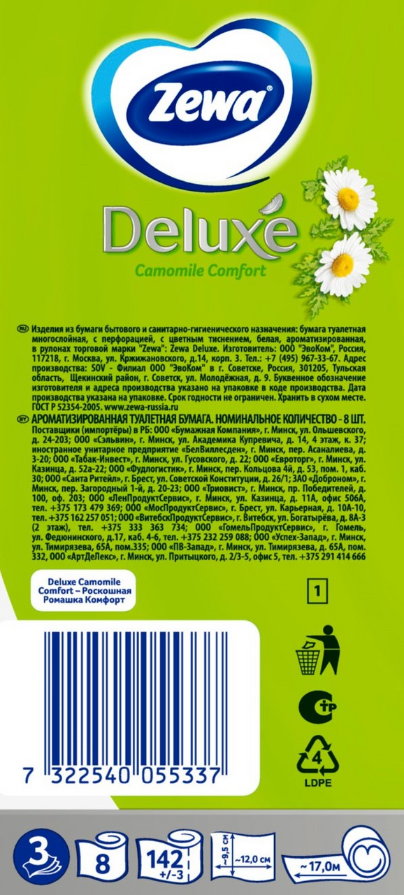 Zewa Deluxe Бумага туалетная трехслойная ромашка 8 рулонов