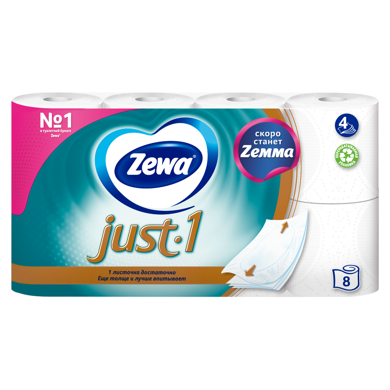 Туалетная бумага Zewa Just 1 4-слойная, 8 рулонов