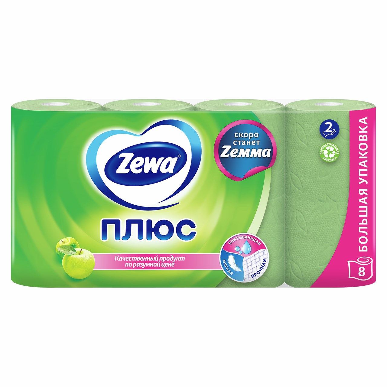 Туалетная бумага Zewa Плюс Яблоко 2-слойная, 8 рулонов
