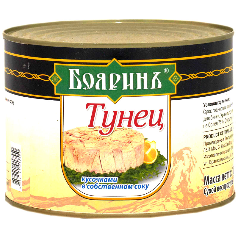 Тунец БОЯРИНЪ кусочки в собственном соку, 1700г
