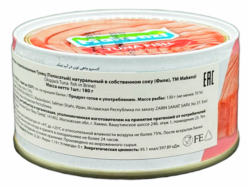 Этот изысканный деликатес, приготовленный из отборного филе тунца в ароматном собственном соку, станет настоящим украшением вашего стола. Представьте: нежные, сочные кусочки тунца, тающие во рту, наполнят ваш обед или ужин неповторимым вкусом и ароматом. Консервы Makenzi - это идеальный выбор для тех, кто ценит натуральность и качество. В каждой банке 180г чистого удовольствия без добавления ароматизаторов, усилителей вкуса и консервантов. Это настоящий кладезь белка и полезных жиров, который зарядит вас энергией на весь день. Тунец натуральный Makenzi - это не просто тунец консервированный, это настоящий кулинарный шедевр, который станет прекрасным дополнением к любому блюду. Добавьте его в салаты, сэндвичи, пасту или просто наслаждайтесь им в чистом виде - выбор за вами. А благодаря удобной упаковке в 180г, вы всегда сможете взять его с собой на пикник, в дорогу или на работу.
