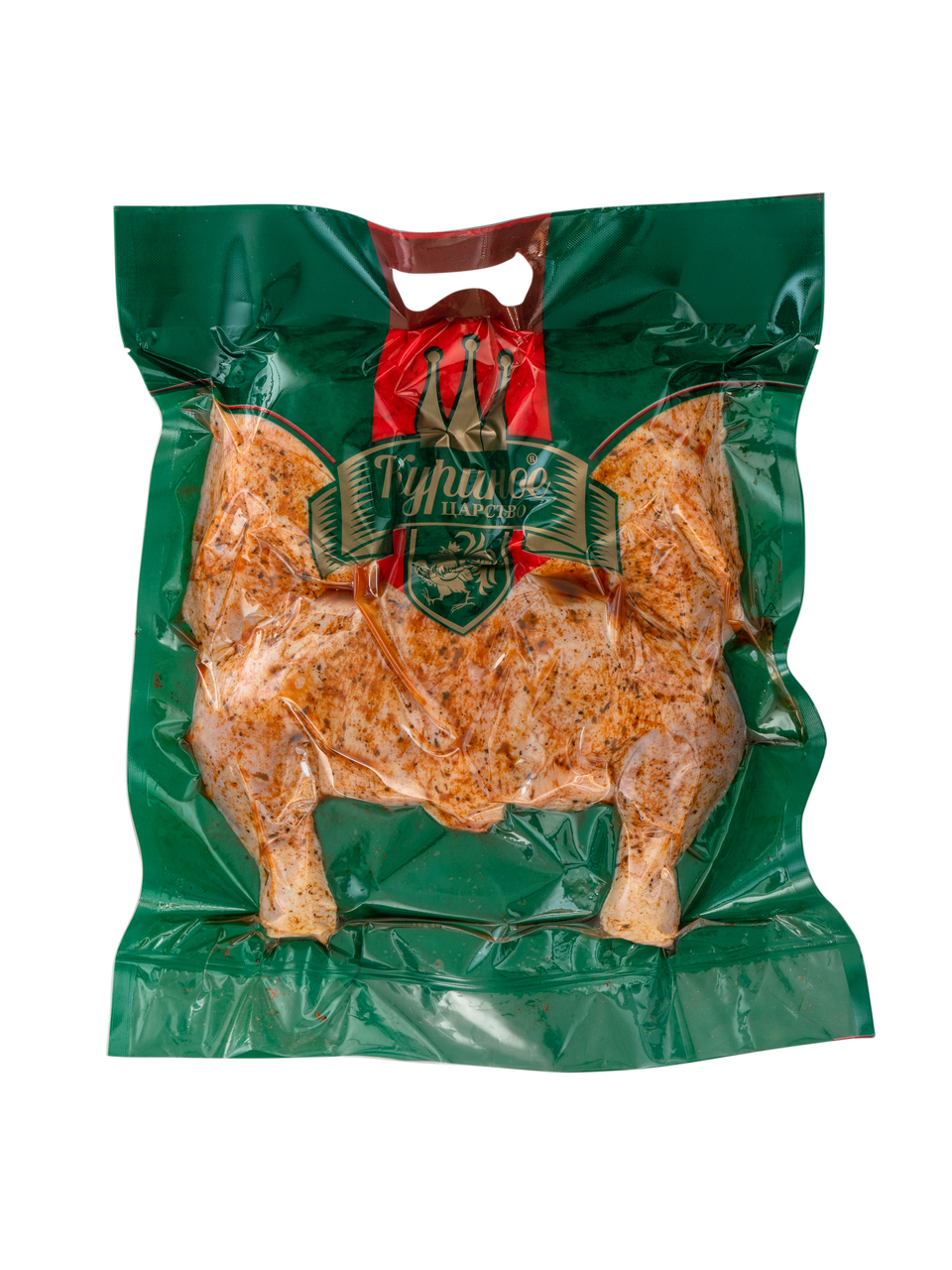 Тушка цыпленка-бройлера, соль, паприка, базилик, красный перец, куркума, кориандр, черный и белый перец, пажитник, чеснок, лук, петрушка, усилитель вкуса и аромата глутамат натрия 1-замещенный, экстракт паприки, сахар, антиокислитель лимонная кислота.