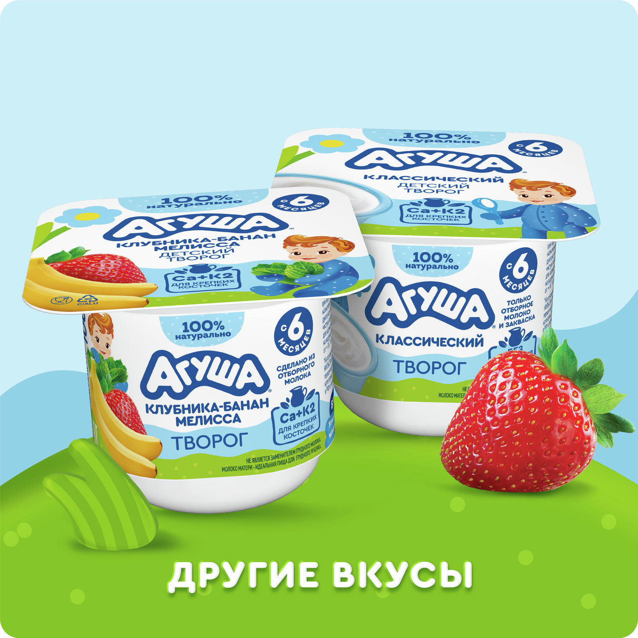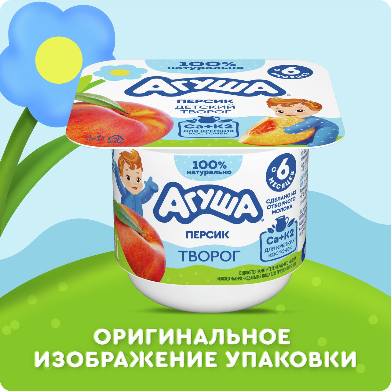 Творог детский Агуша с натуральным витамином К2. Без консервантов, красителей, ГМО. Сочный персик. Содержит натуральный витамин K2, который помогает кальцию усваиваться.