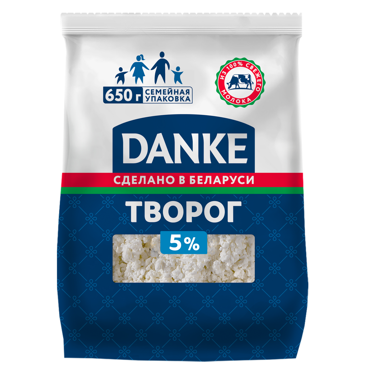 Творог натуральный Danke 5% в семейной упаковке 650 грамм — это молочный продукт, изготовленный из свежего молока без добавления искусственных ингредиентов. Он имеет нежный вкус, натуральный аромат и содержит много белка. Такой творог отлично подходит для разнообразных кулинарных экспериментов: его можно добавлять в выпечку, запеканки или использовать в качестве начинки для блинов. Удобная большая упаковка для всей семьи!