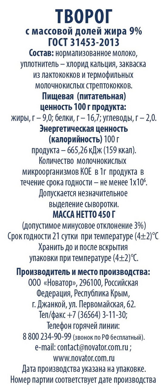 Творог Джанкойское молоко ГОСТ 9%, 450г