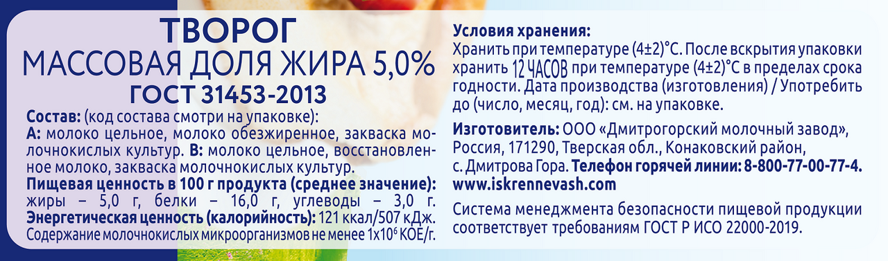 Богат кальцием, фосфором и молочным белком, при этом легко усваивается и переваривается. Содержащиеся в нем компоненты полезны для формирования костной системы и благоприятно действуют на организм. Изготовлен из натурального молока, имеет насыщенный вкус с небольшой кислинкой и ярко выраженным молочным вкусом. Отлично сочетается со сметаной, мёдом, вареньем. Подходит для приготовления начинок для сырников, блинчиков, вареников.