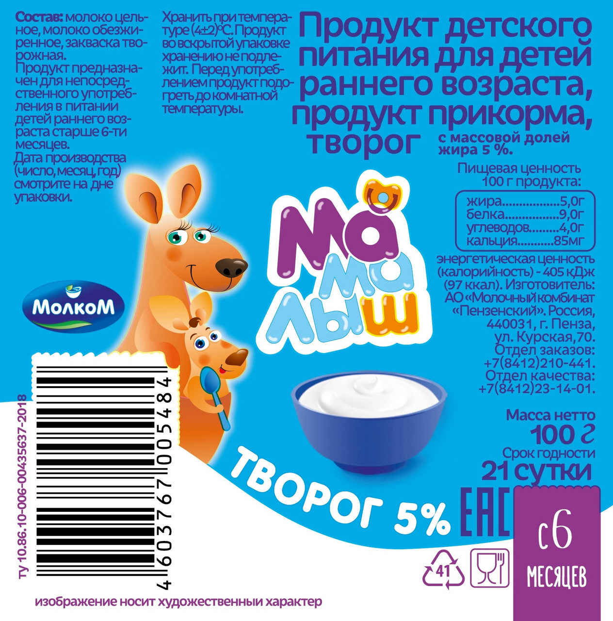 Творог МаМалыш 6+ месяцев 5%, 100г