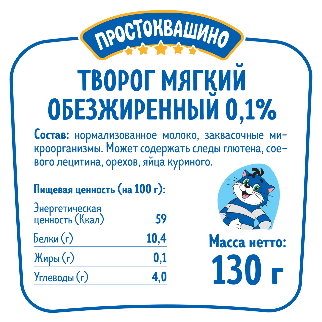Творог Простоквашино мягкий обезжиренный 0.1%, 130г