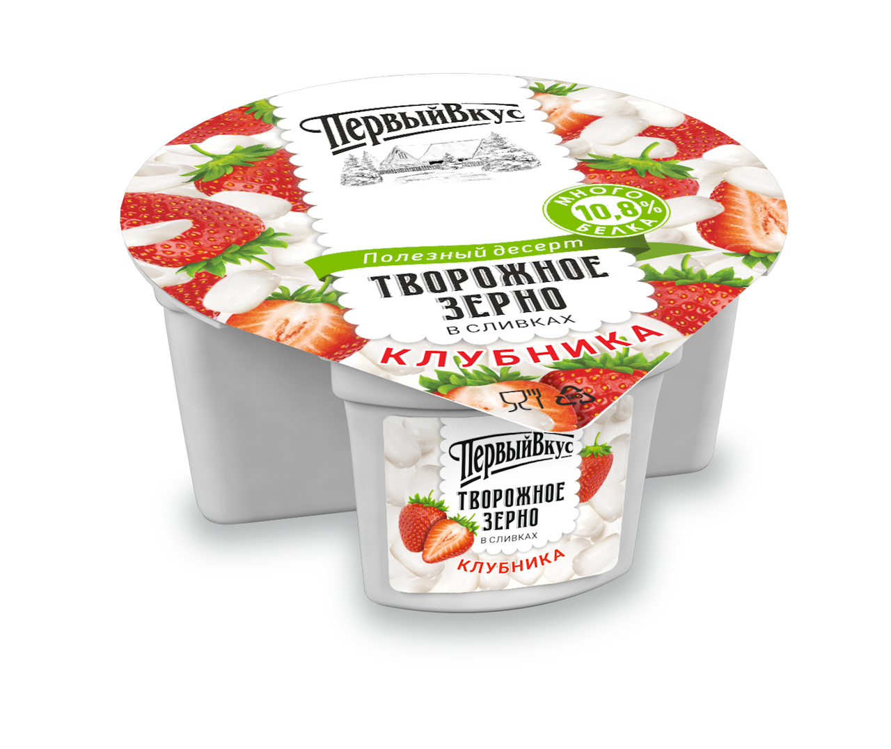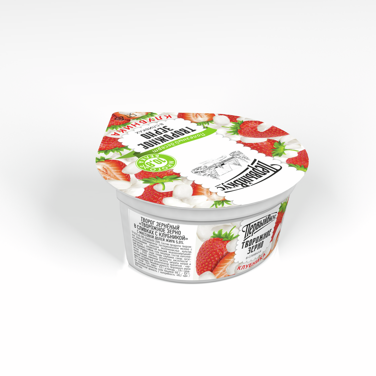 Творог зерненый Первый вкус в сливках с клубникой 5%, 130г