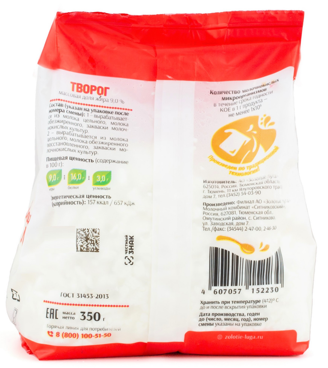 Творог Золотые луга 9%, 350г