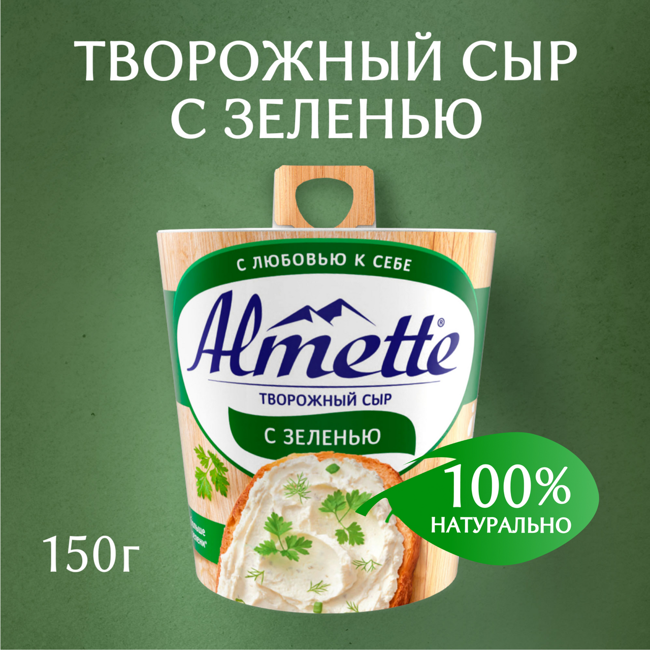 Насладитесь нежным вкусом творожного сыра Almette с зеленью. Сыр творожный подарит вам настоящее удовольствие благодаря свежему вкусу и аромату зелени и 100% натуральным ингредиентам. Almette на брускетте, круассане или багете–прекрасный вариант для завтрака. Сыр Almette так же станет нежным перекусом с любовью к себе, ведь его можно есть даже ложкой. А еще больше зелени* в составе добавит насыщенности вашим закускам.*По сравнению с предыдущим рецептом продукта