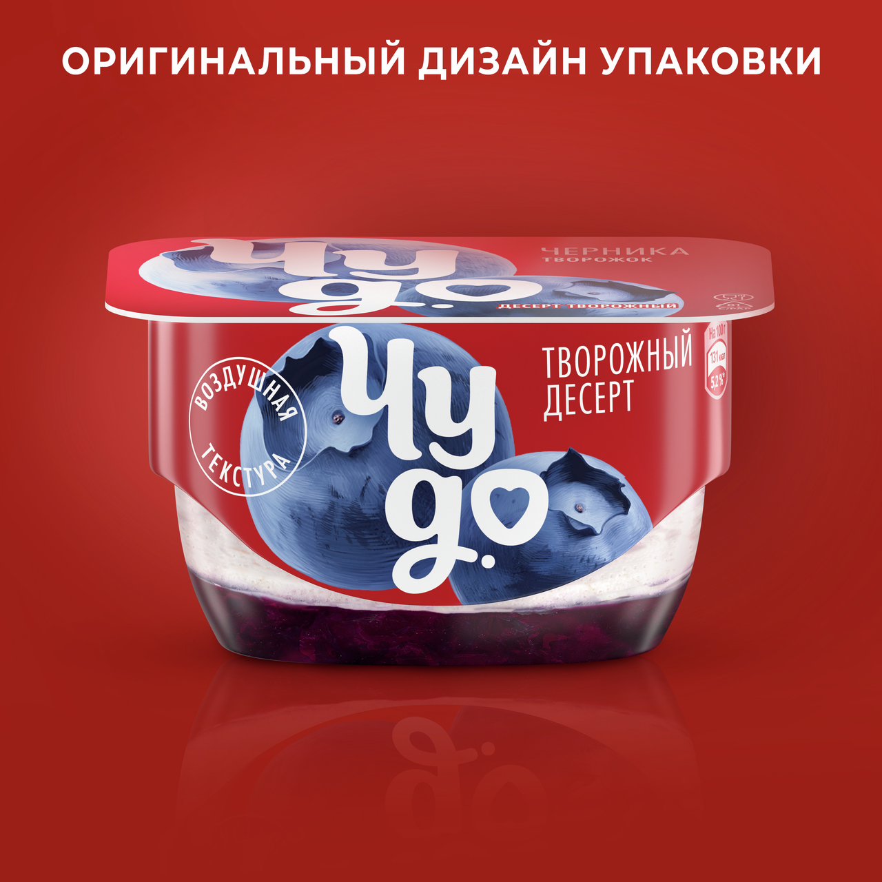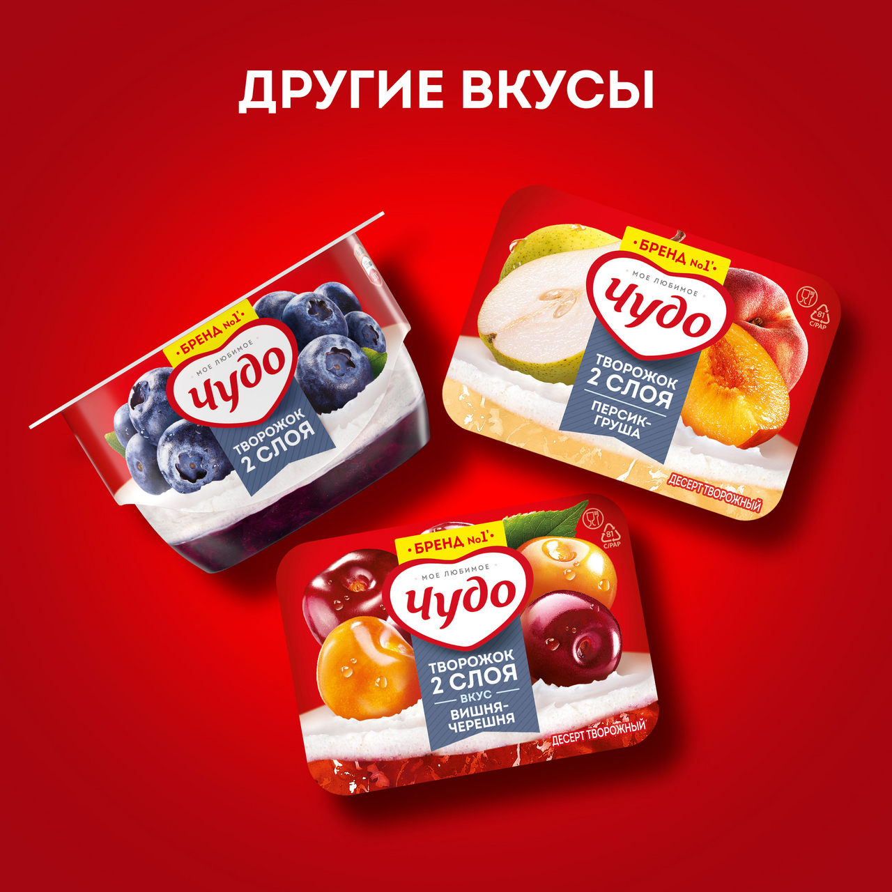 Двухслойный творожок Чудо- это уникальная нежная текстура воздушного творожка + джем с кусочками ягод. Яркий вкус черники и воздушного творожка. Сочетание двух слоев, нижний - черничный джем, верхний - нежный творожок. Отлично подходит для перекуса или завтрака. Наслаждайтесь сладкими моментами.