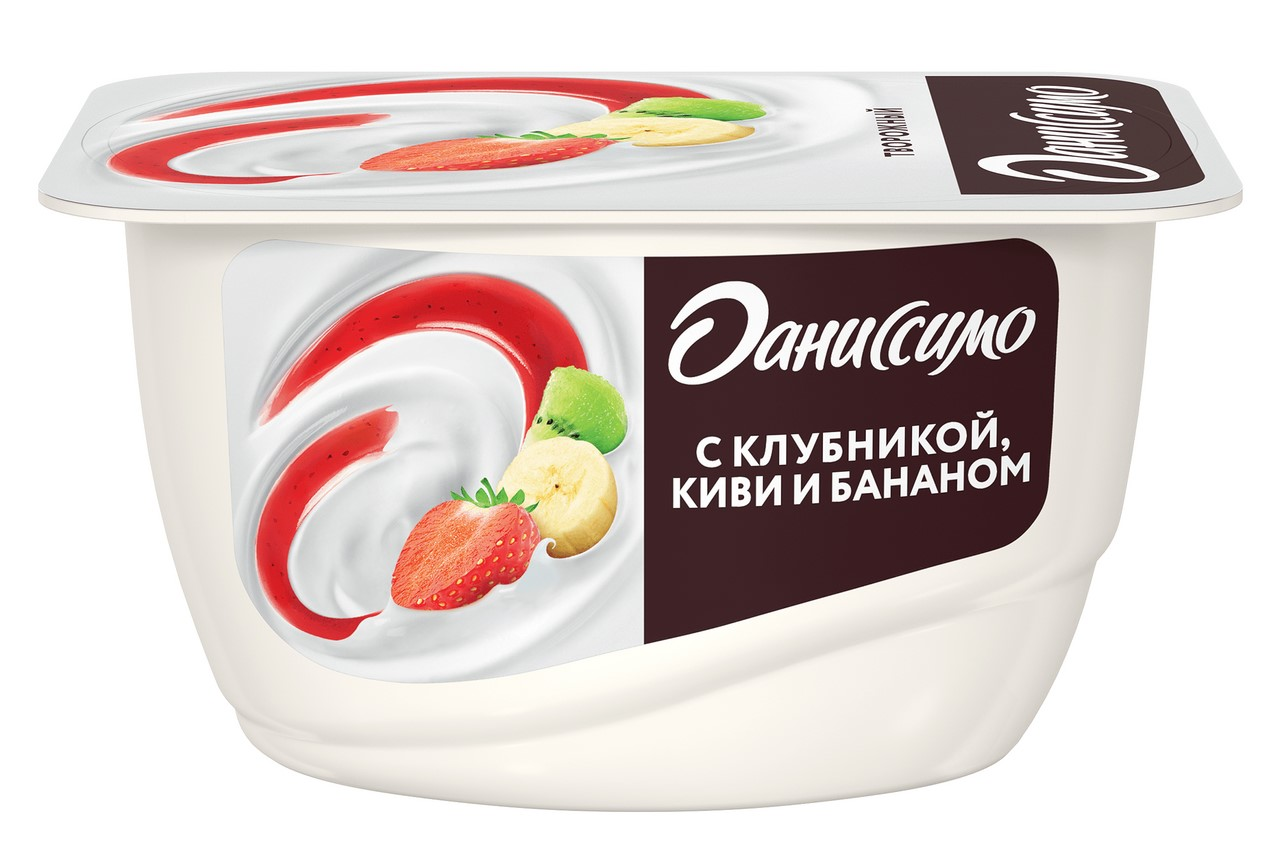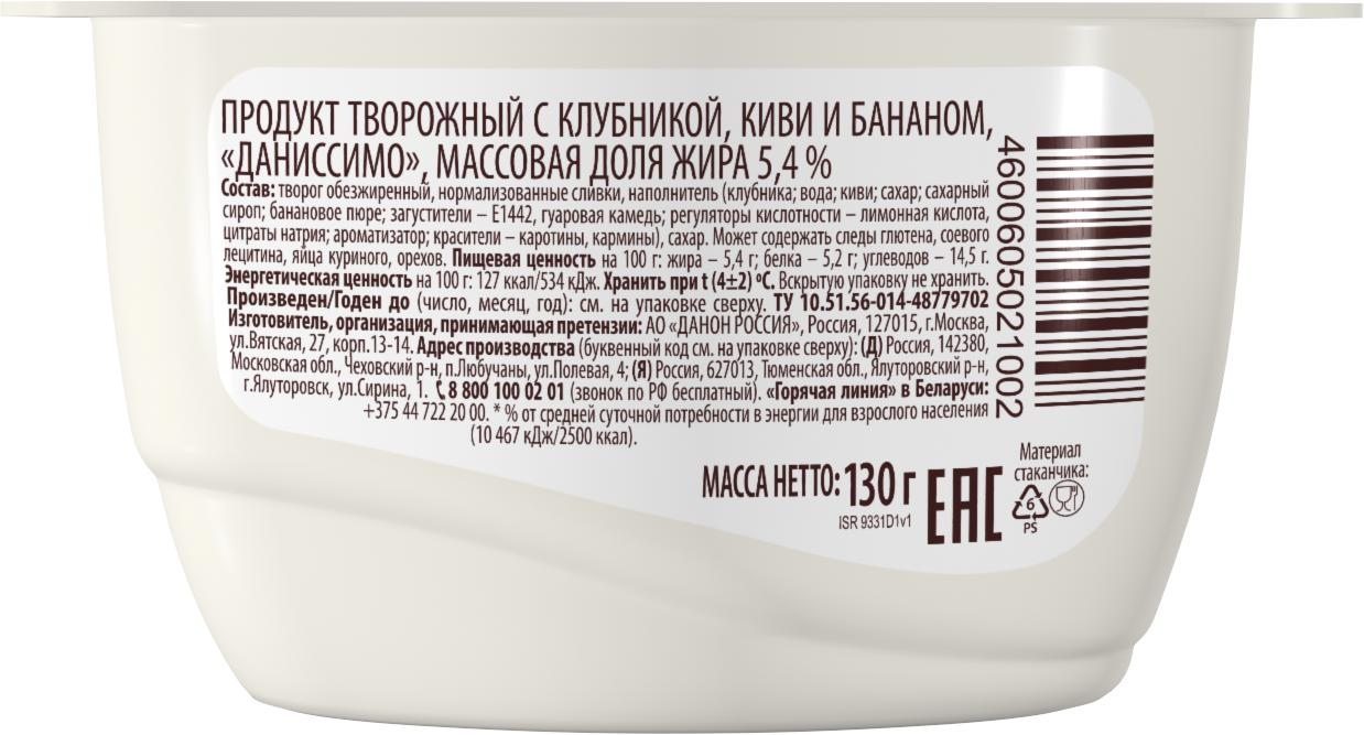Творожок Даниссимо с клубникой, киви и бананом 5.4%, 130г