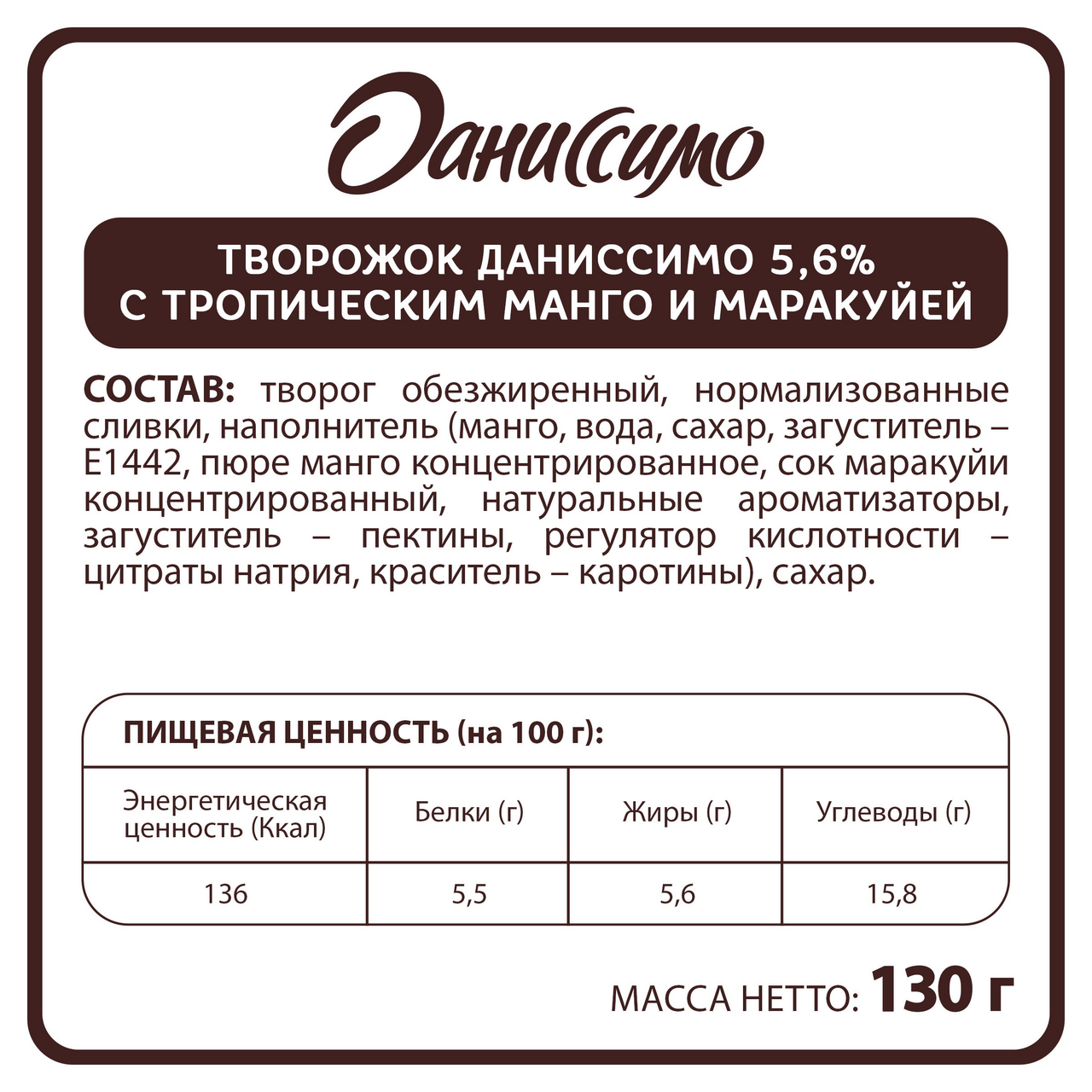 Творожок Даниссимо с манго и маракуйей 5.6%, 130г