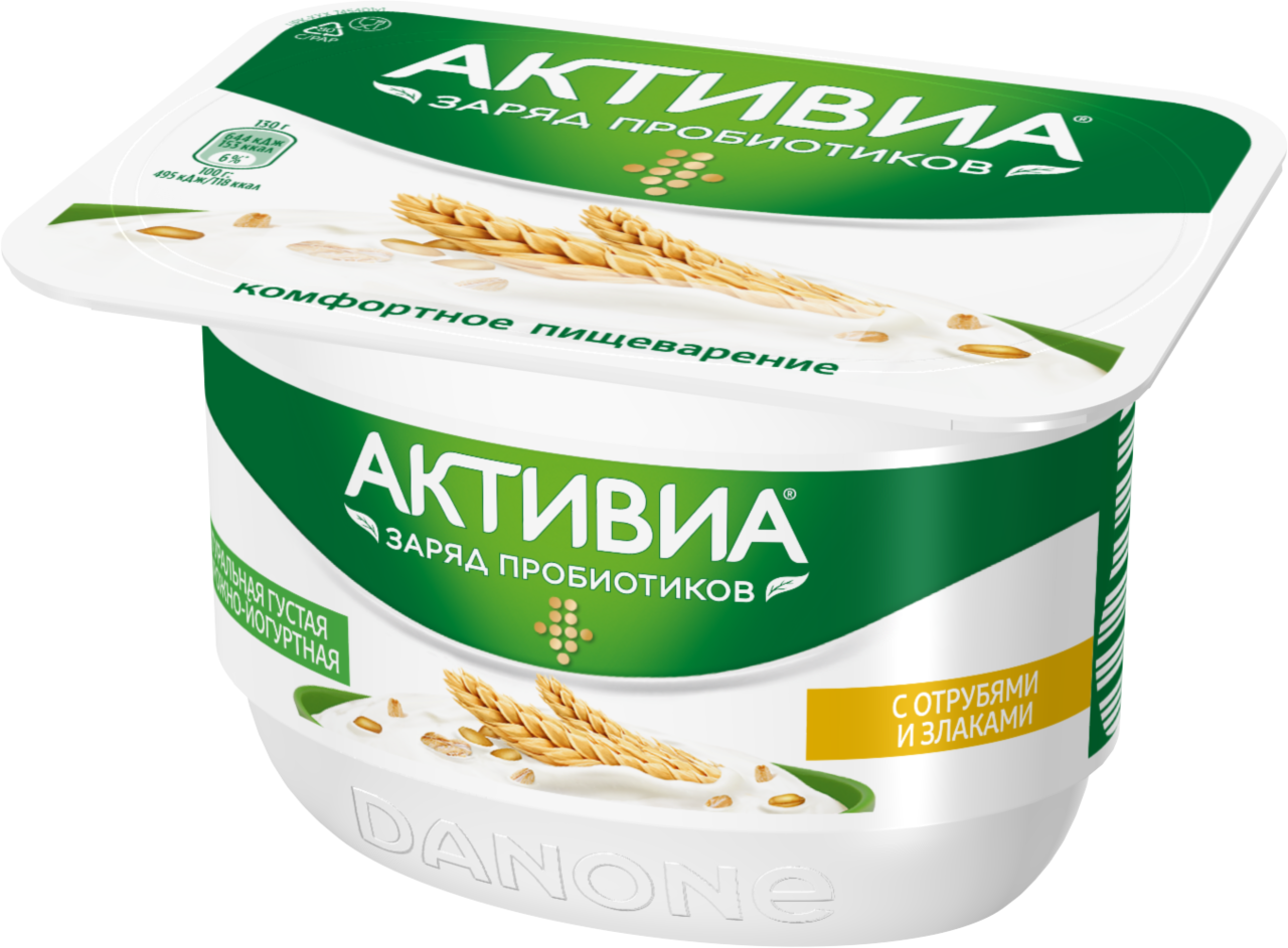 Творожок АКТИВИА творожная с отрубями и злаками, 130 г