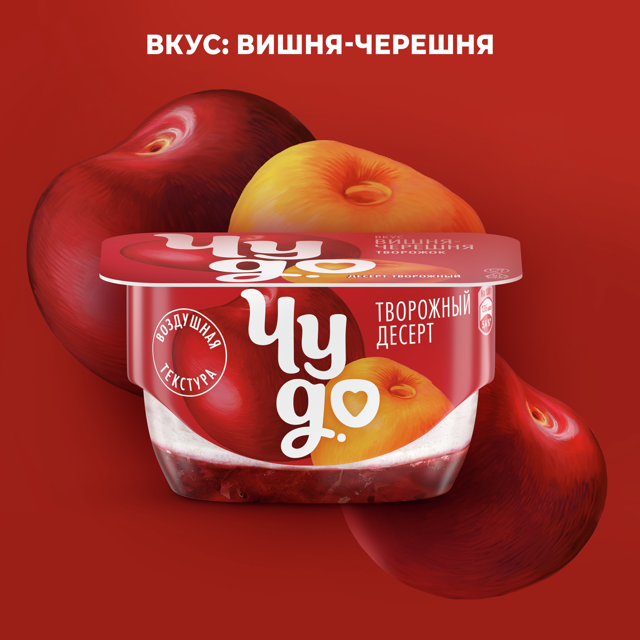 Двухслойный творожок Чудо- это уникальная нежная текстура воздушного творожка + джем с кусочками ягод. Яркий вкус вишни, черешни и воздушного творожка. Сочетание двух слоев, нижний - джем из вишни с нотками черешни, верхний - нежный творожок. Отлично подходит для перекуса или завтрак. Наслаждайтесь сладкими моментами.