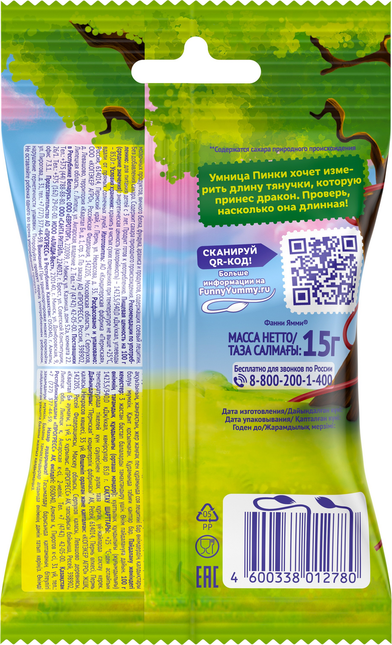 Тянучка фруктовая Фанни Ямми яблоко и клубника, 15г