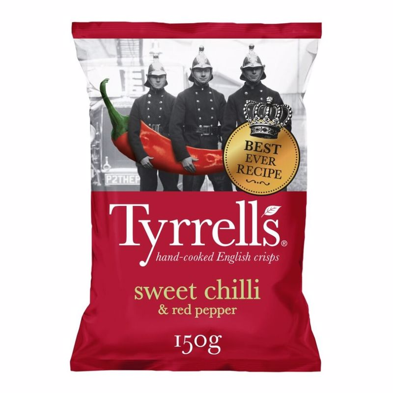 Чипсы картофельные TYRRELLS Сладкий перец чили и красный перец – для тех, кто любит поострее! Изготовлены вручную по классической европейской рецептуре. Острые и пикантные, они подходят в качестве питательного перекуса, а также хорошо сочетаются с пивом. Для каждого вкуса чипсов TYRRELLS разработаны дизайнерские упаковки в стиле ретро. Сделанные в Англии, они давно полюбились во многих странах за их натуральный состав и оригинальный вкус.