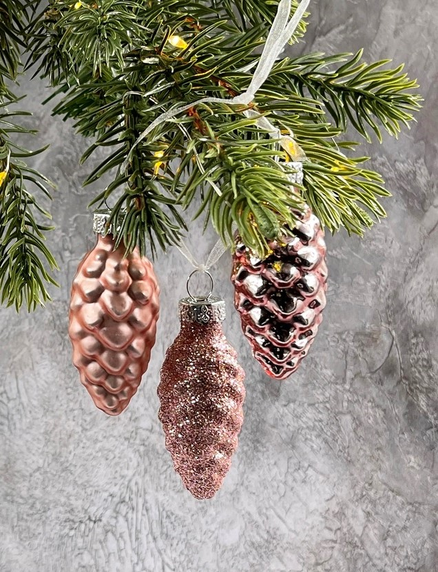 Украшение ChristmasDeLux Связка шишек розовое 3шт, 3см