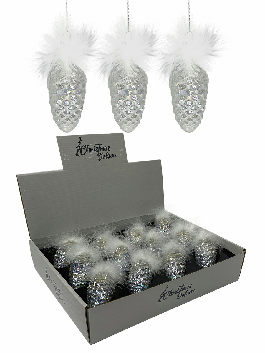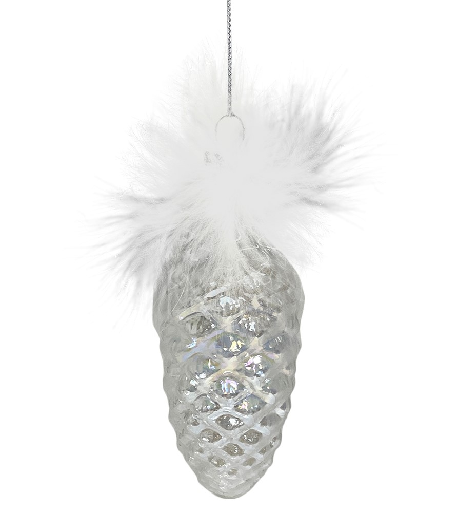 Украшение елочное Christmasdeluxe Шишка с перышками прозрачное, 10см