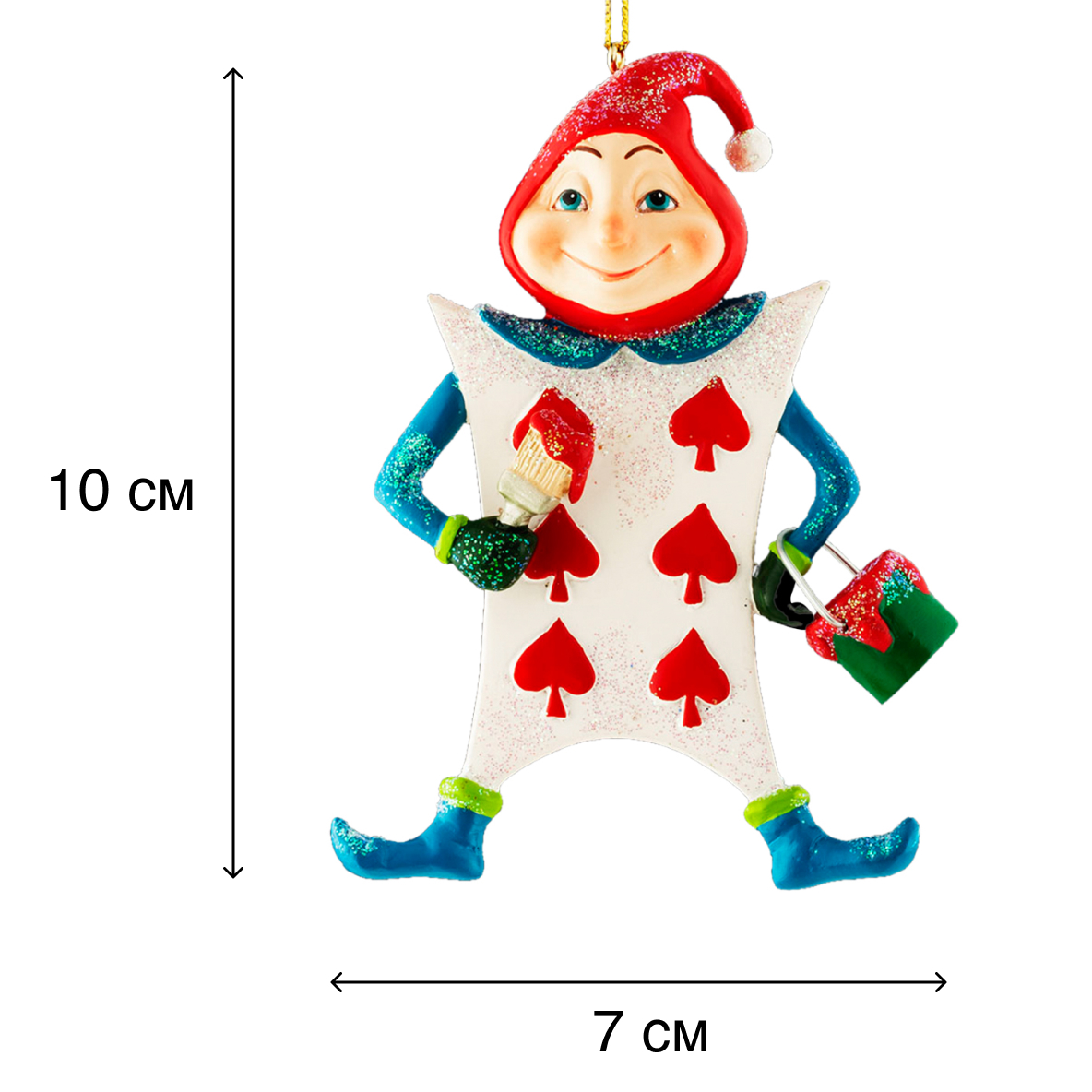 Украшение Erich Krause Червонный валет, 10см - серия елочных украшений по мотивам сказки Алиса в Стране Чудес включает следующих персонажей: Алиса, Белый Кролик, Червонная Королева, Шалтай-Болтай, Червонный Валет, Безумный Шляпник, Чеширский Кот и другие. Когда они вместе собираются на елке, то интересно дополняют друг друга. Сказочные персонажи красиво смотрятся и создают уютную атмосферу дома. Червонный Валет отличается тонко прорисованными деталями. На руке качается небольшое ведерко. Групповая упаковка предназначена только для безопасной транспортировки и хранения.