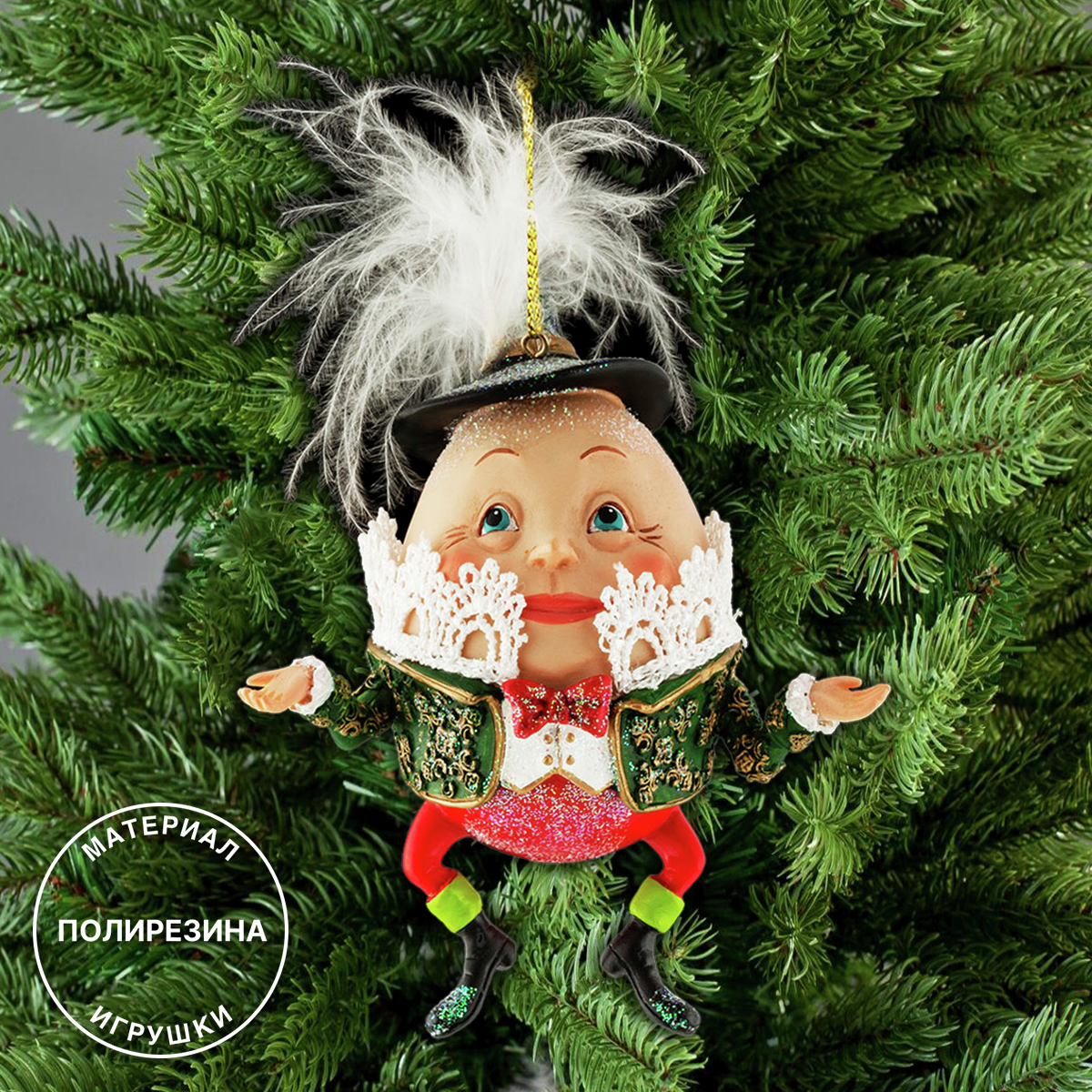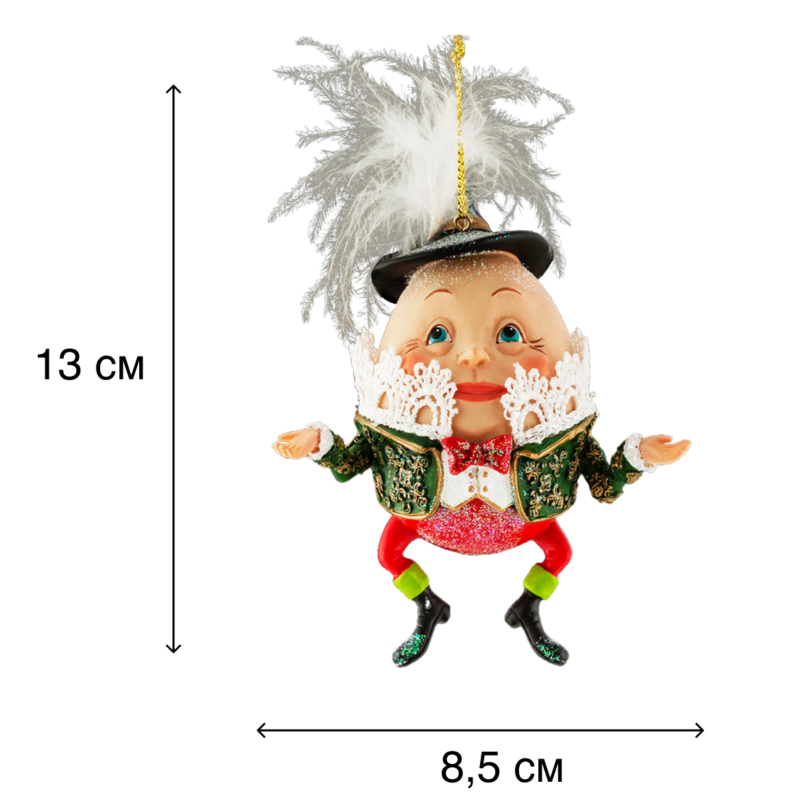 Серия елочных украшений по мотивам сказки Алиса в Стране Чудес включает следующих персонажей: Алиса, Белый Кролик, Червонная Королева, Шалтай-Болтай, Червонный Валет, Безумный Шляпник, Чеширский Кот и другие. Когда они вместе собираются на елке, то интересно дополняют друг друга. Сказочные персонажи красиво смотрятся и создают уютную атмосферу дома. Шалтай-Болтай отличается тонко прорисованными деталями. Изделие является относительно тяжелым, предпочтительно использование на искусственной елке. Групповая упаковка предназначена только для безопасной транспортировки и хранения.